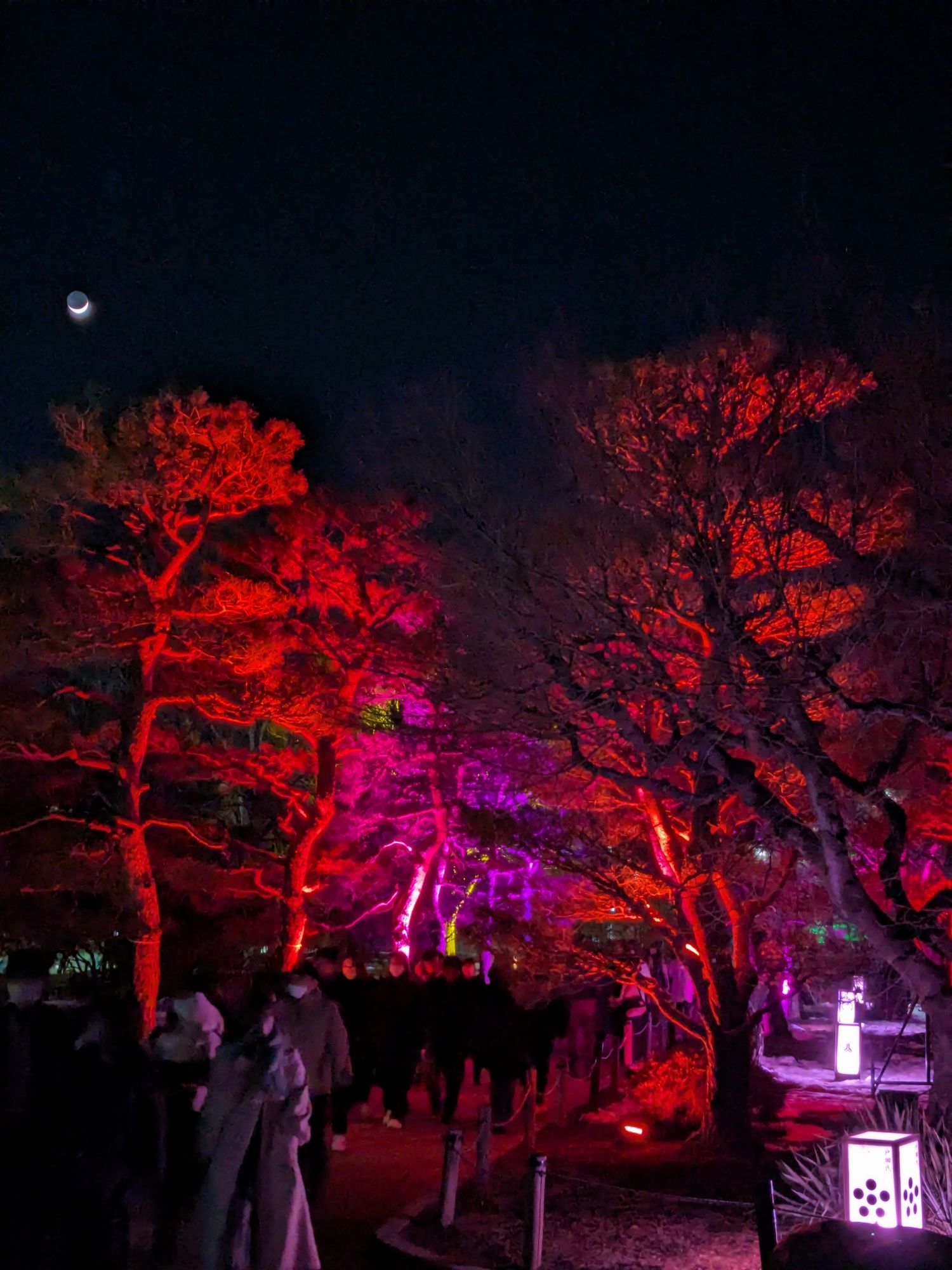 松本城では初めてクリスマスの夜2日間本丸庭園の一部を無料開放しています。