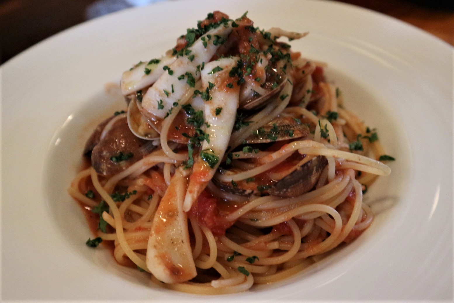 ヤリイカとアサリのトマトソーススパゲティ
