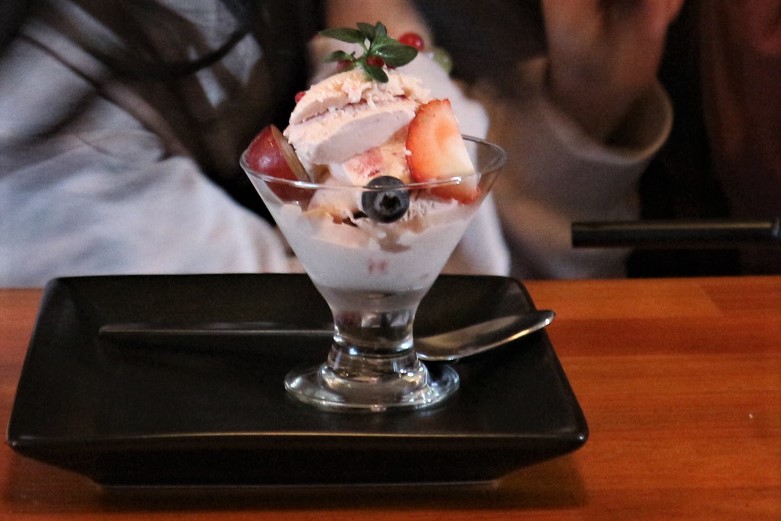 たっぷり入った自家製の苺のアイスクリームは、甘酸っぱくとても美味しかったです。