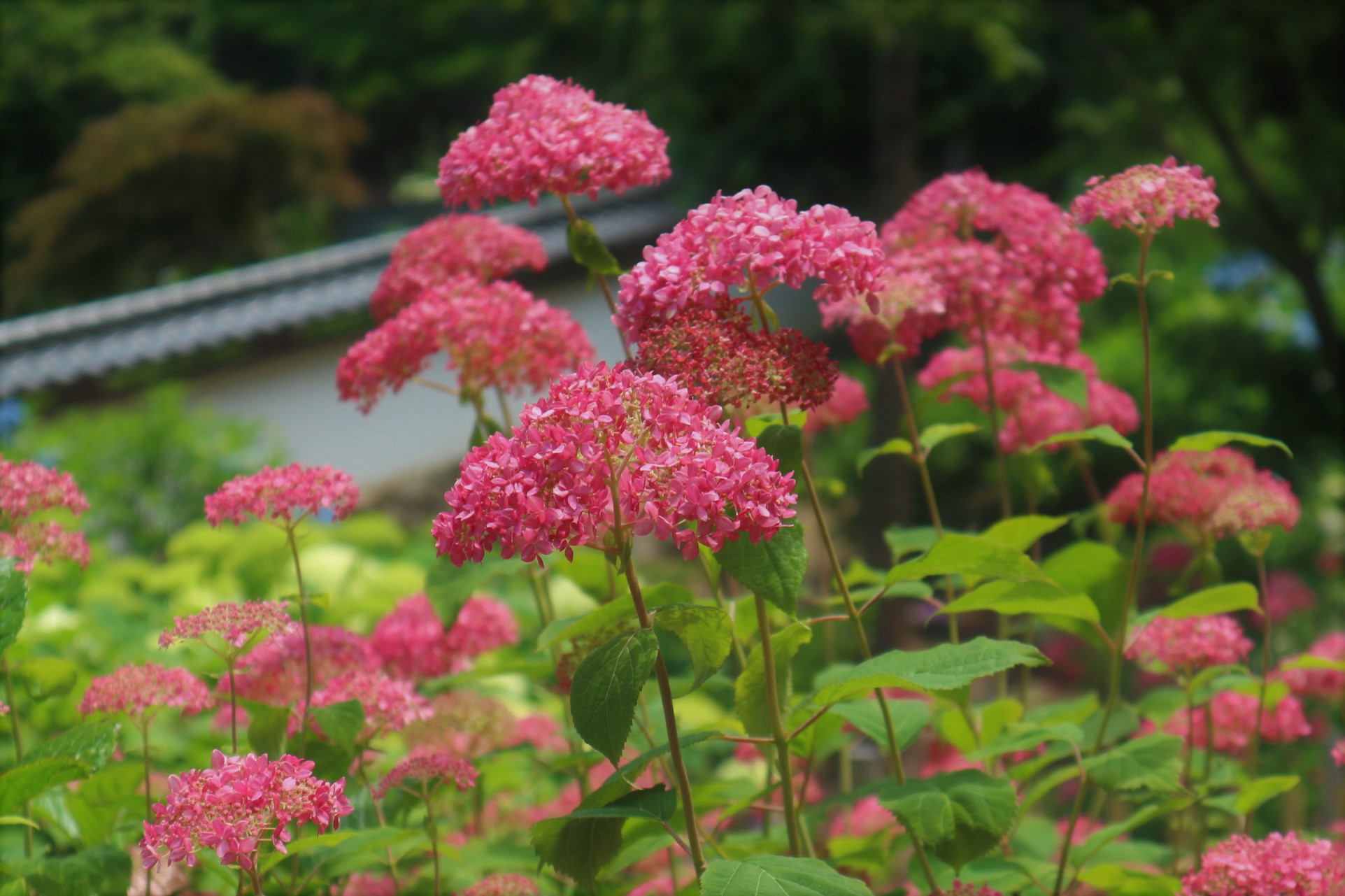 檀家の方のご奉仕で昭和55年からあじさい庭園が造成され、現在は90種 約1,000株のあじさいが植えられています。