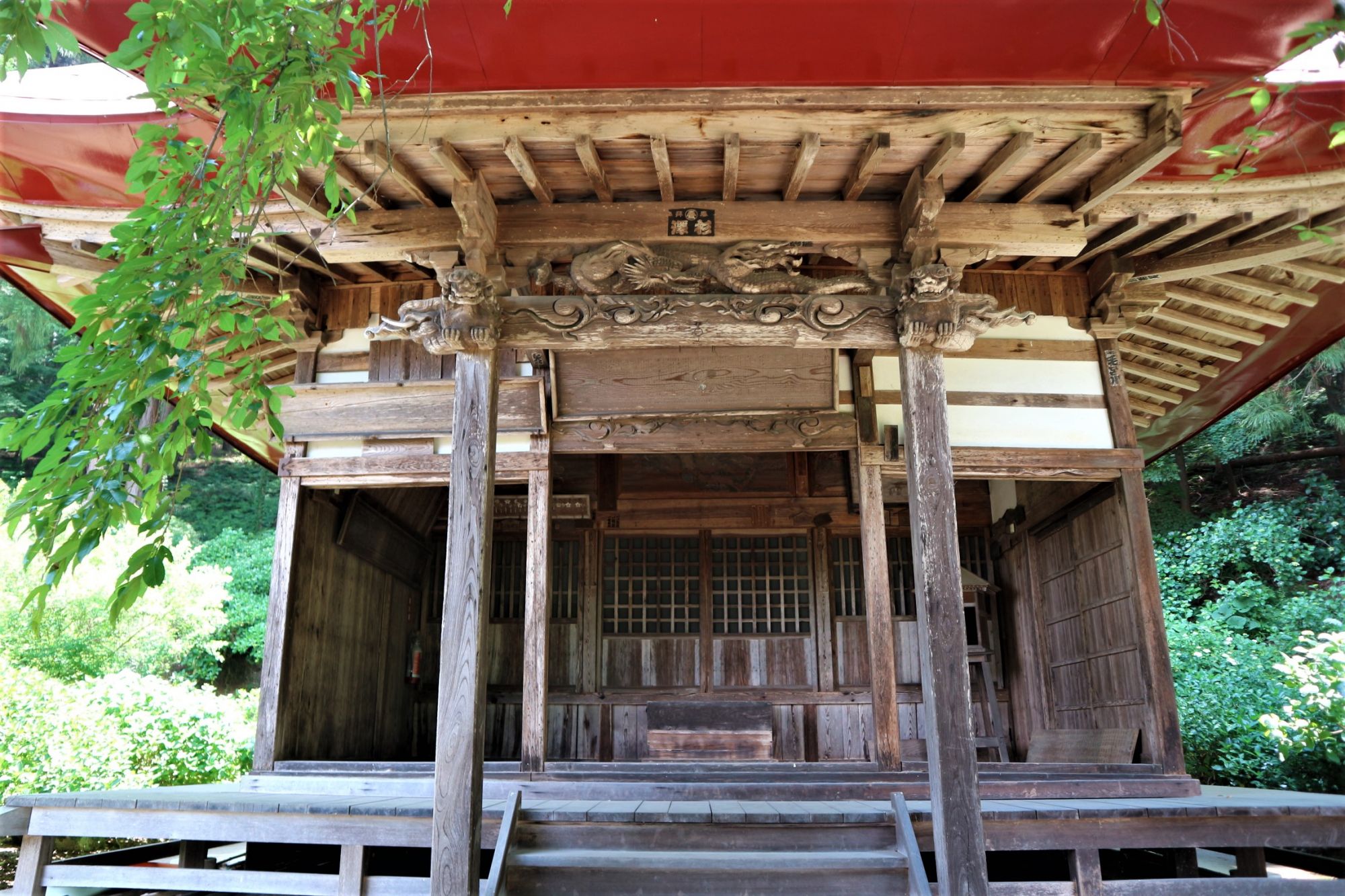 林を周り込み上まで行くと歴史を感じる拝殿があります。
