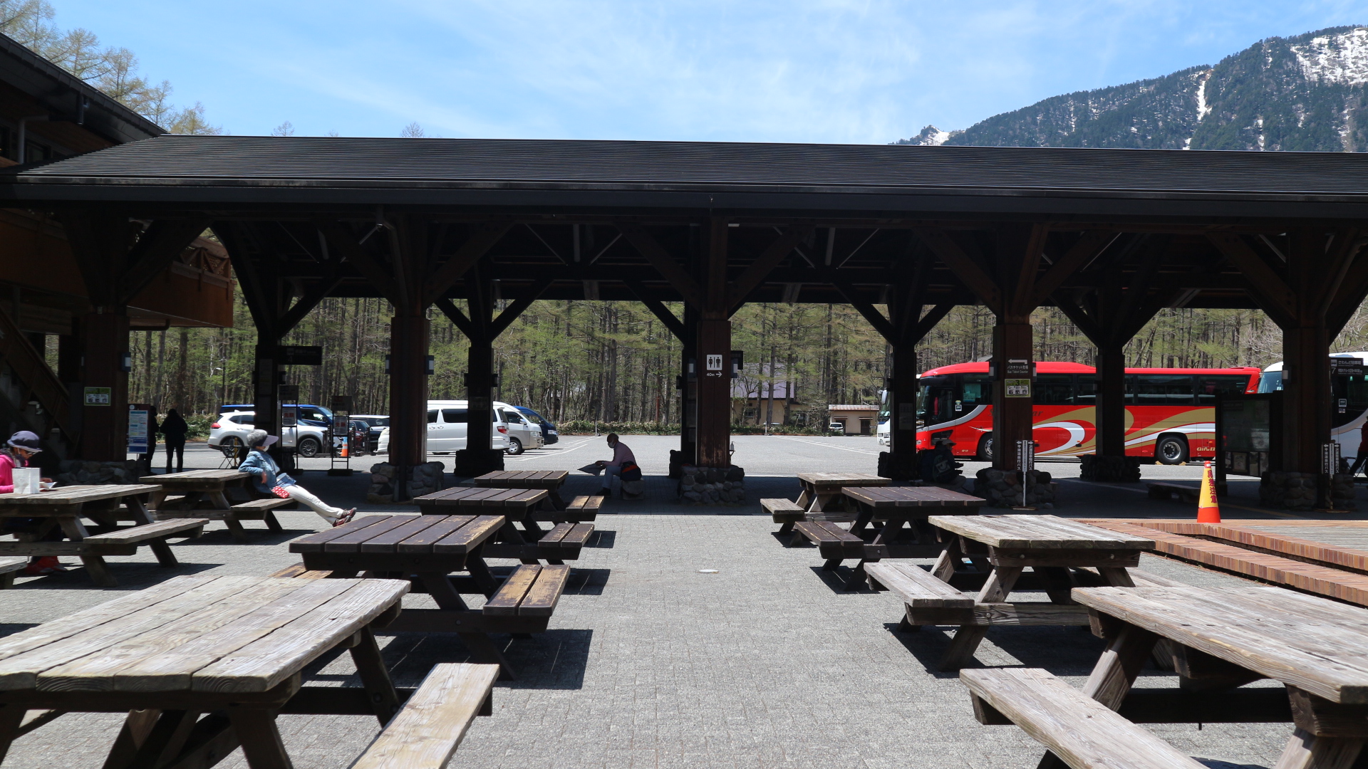 バスターミナルの隣にある上高地インフォメーションセンターでは、上高地の自然や散策・登山情報、交通、宿泊などさまざまな情報を提供しています。散策前の情報収集や休憩にお気軽にお立ち寄りください。
