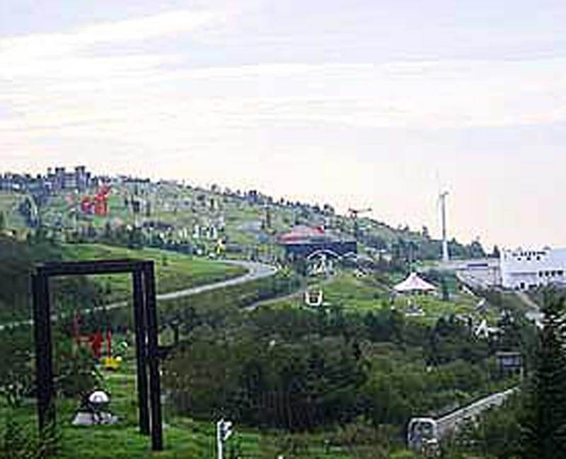 山頂が広大な台地になっていて、なだらかな草原歩きを楽しめる山。 バスや車に乗って山頂の一角まで上がれば、体力的に楽に2000mの世界を散策できます。 山頂にはホテルや山小屋、美術館があり、5月中旬~10月中旬は牛も350頭ほど放牧されています。