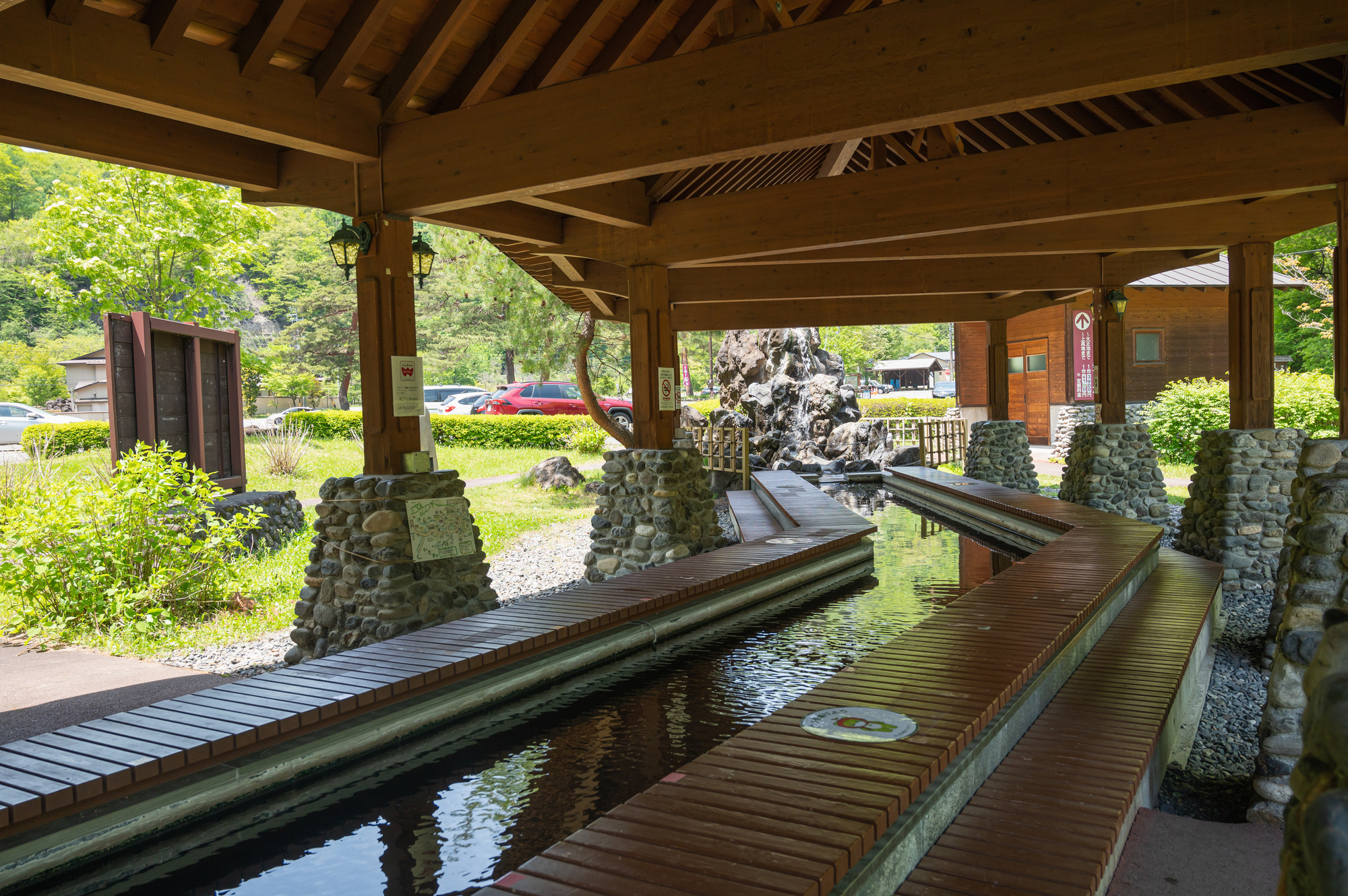 上高地への乗り換え地点として賑わうエリアに湧く温泉です。比較的新しい温泉地ながら、肌に優しい弱アルカリ性の湯質で、上高地散策の前後に気軽に立ち寄れる公共浴場や足湯も充実しています。