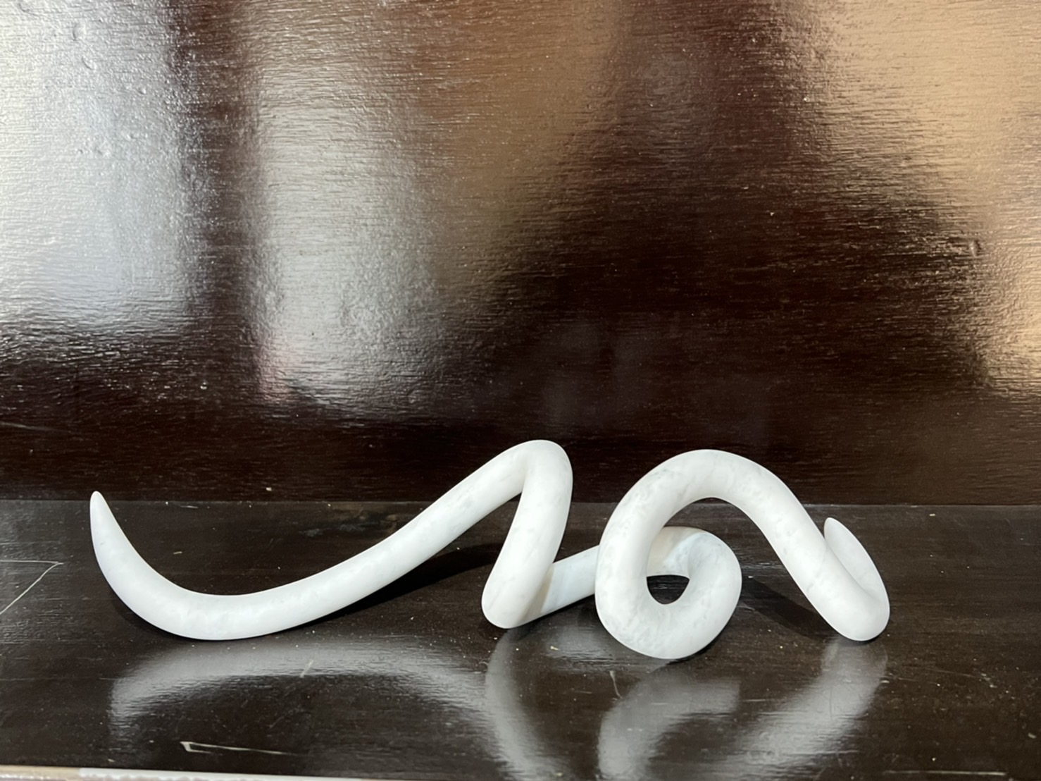 モノや道具など既製品の一部分を大理石などの石に置き換え、モノの一部が石化した、あるいは石がモノの形に物化したイメージの作品を制作している。