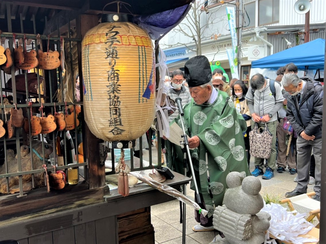 なわて通りの真ん中にある「カエル大明神」では、神事が執り行われました。