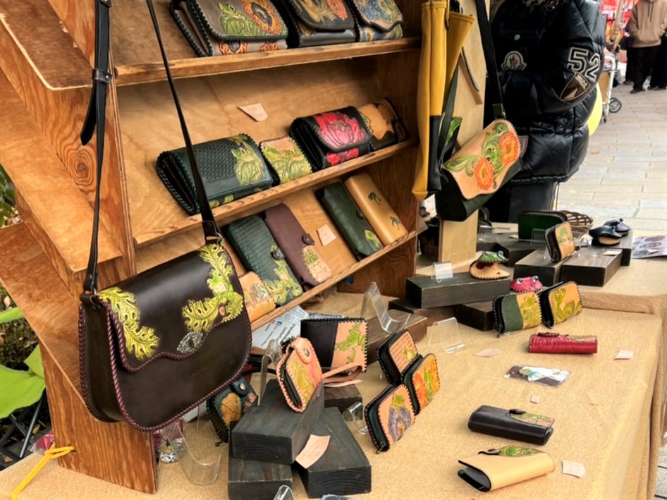 なわて通り、桝形跡広場では、33軒のかえるをモチーフにした作品を作る作家さんの「かえる市場」のテントが並びました。