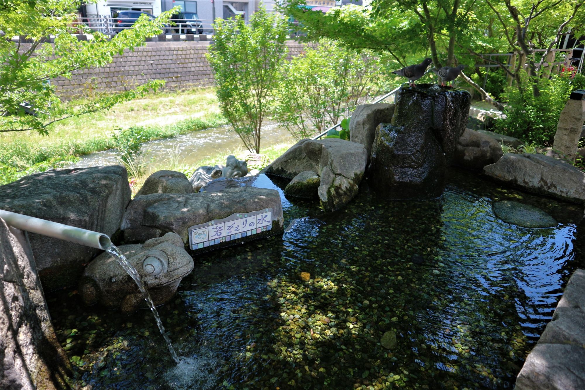 松本市の「水と緑の空間整備事業」 平成29年度₍2017)年度完成.2箇所から水が流れています。