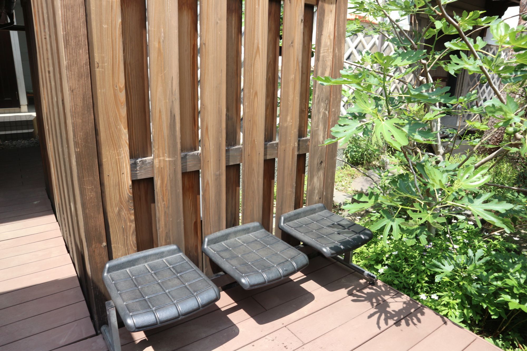 入口テラスに洒落た椅子があります。