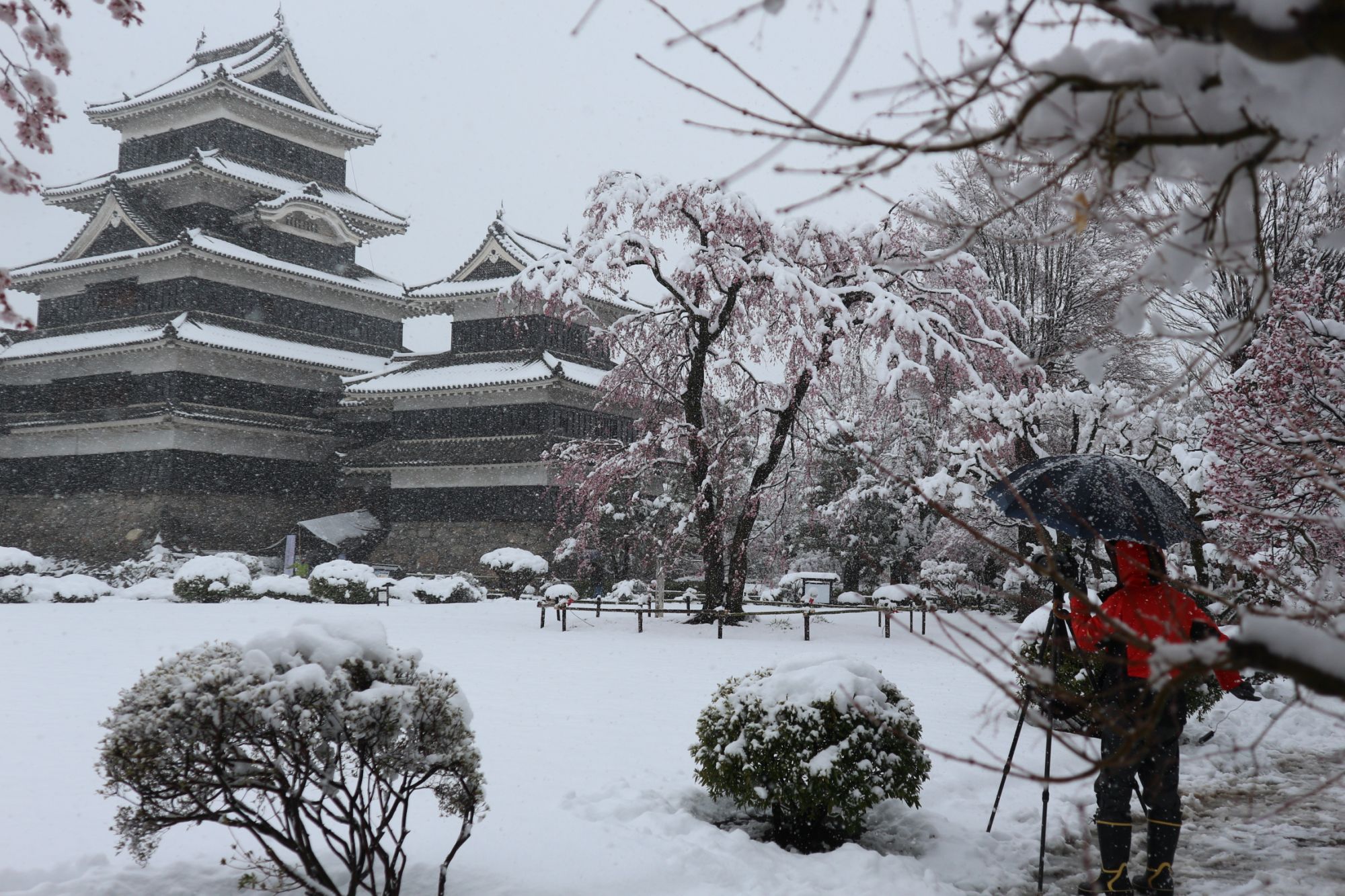 国宝松本城 春の雪と桜 桜情報 国宝松本城 2020.3.29 ♥78 松本城開花宣言の翌日3月29日 明け方からの雪はやまず 国宝松本城に行って来ました! 2年3月29日 2年3月29日 一面の銀世界 本丸庭園 本丸庭園2年3月29日 そして 桜 松本らしい美しい光景 2年3月29日コヒガンサクラ 2年3月29日 カメラマンも雪にもめげず! 2年3月29日カメラマン 2年3月29日カメラマン2 白と黒のお城が雪に覆われるとその美しさは何倍にも増すように思います。そこに桜色が加わり更に美しくなります。 雪だるま2 2年3月29日 Tweet