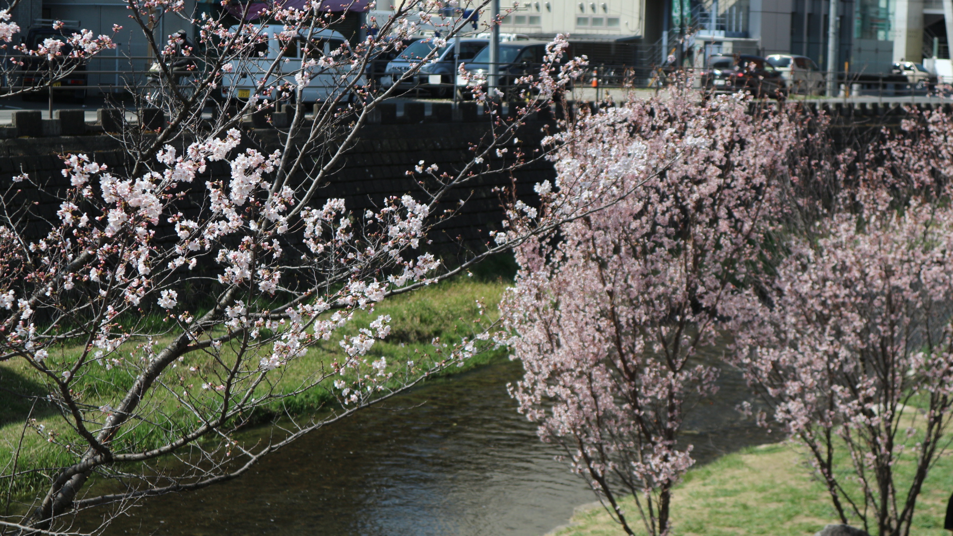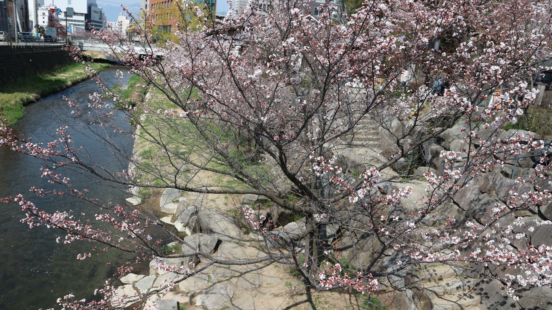 4月7日(木)松本市街地を流れる女鳥羽川ソメイヨシノが咲いてます。