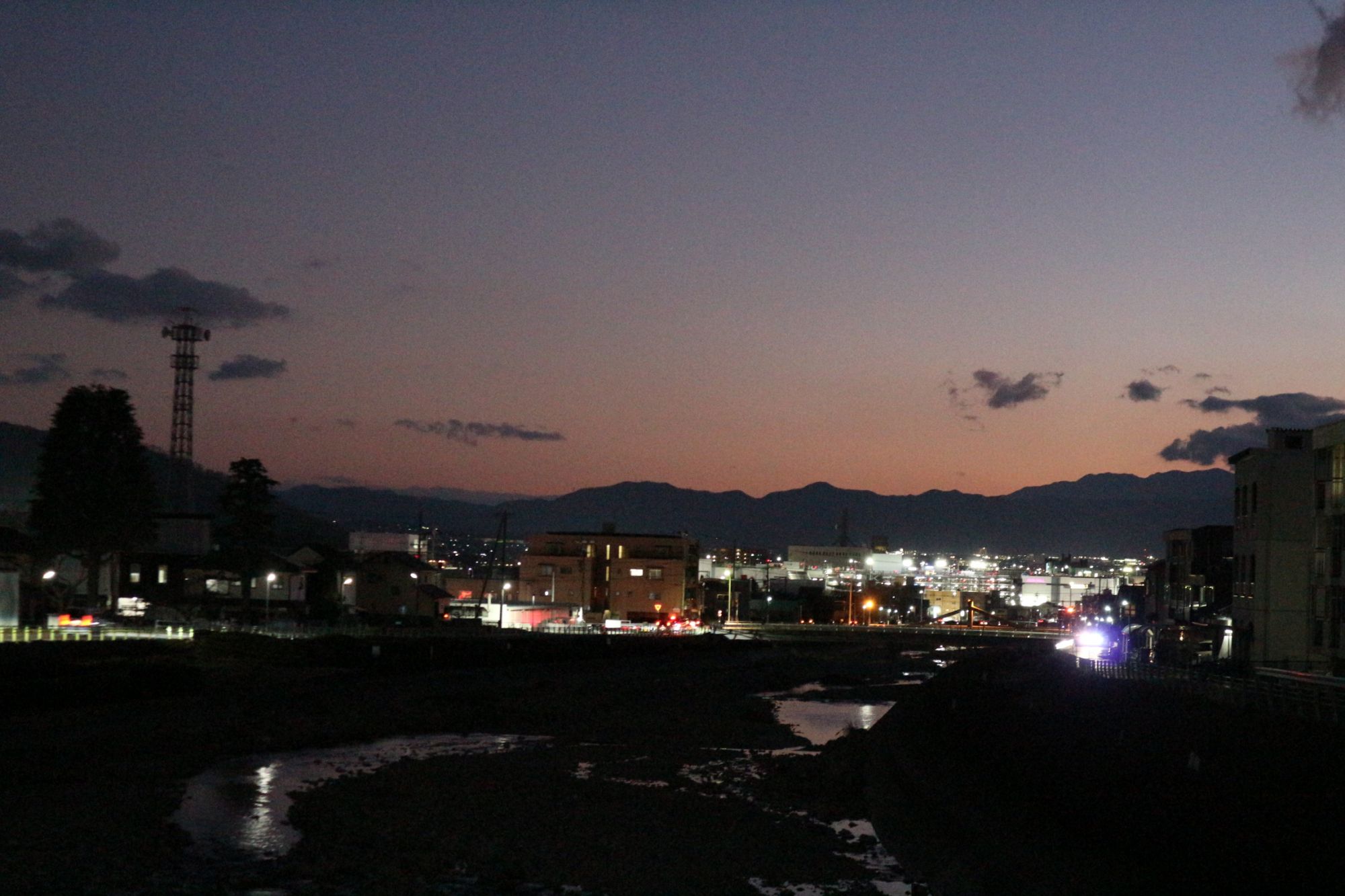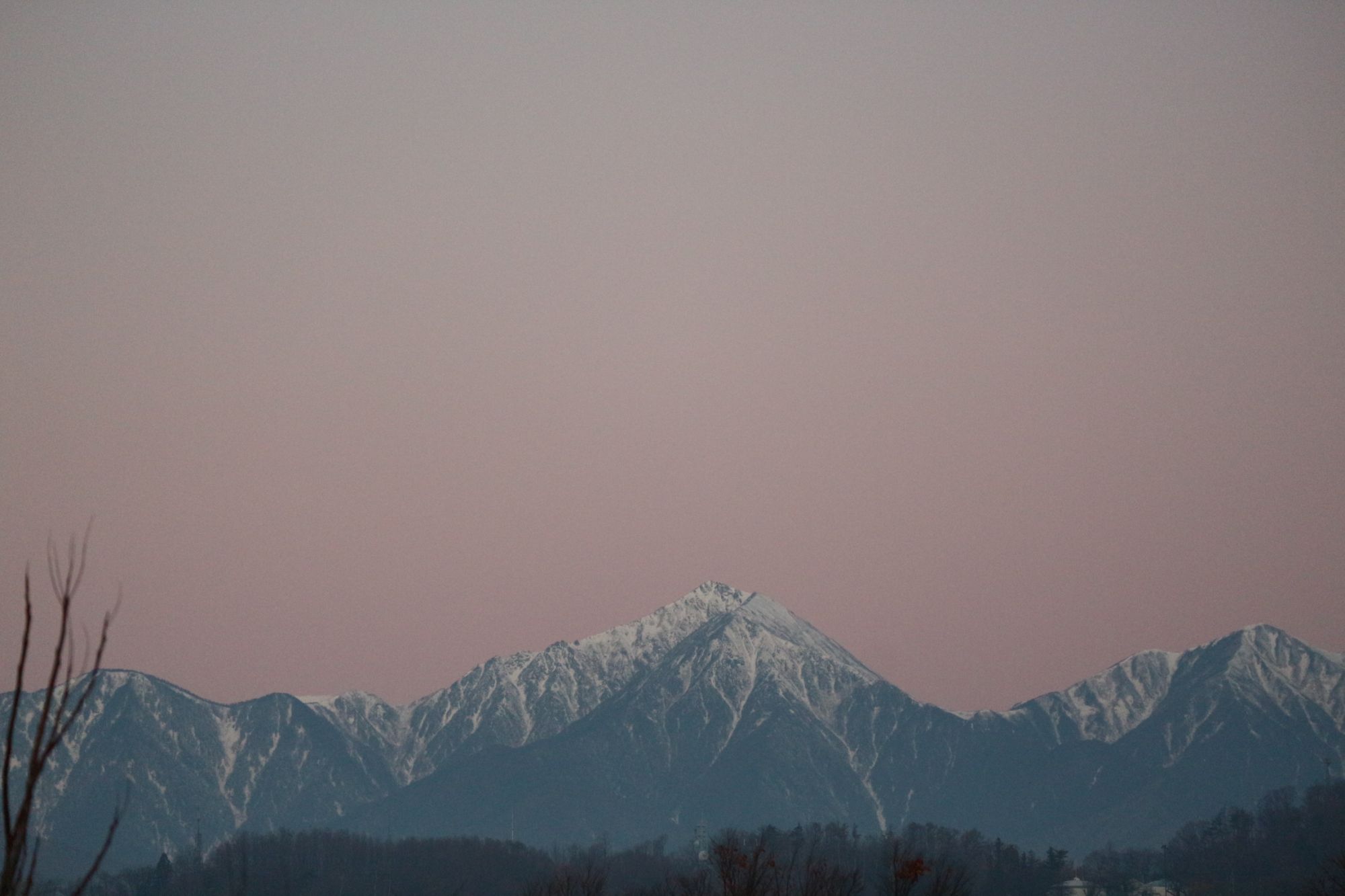 冬至の頃の満月は、朝日が昇る頃に西の山に月が沈んでいくのが見られます。