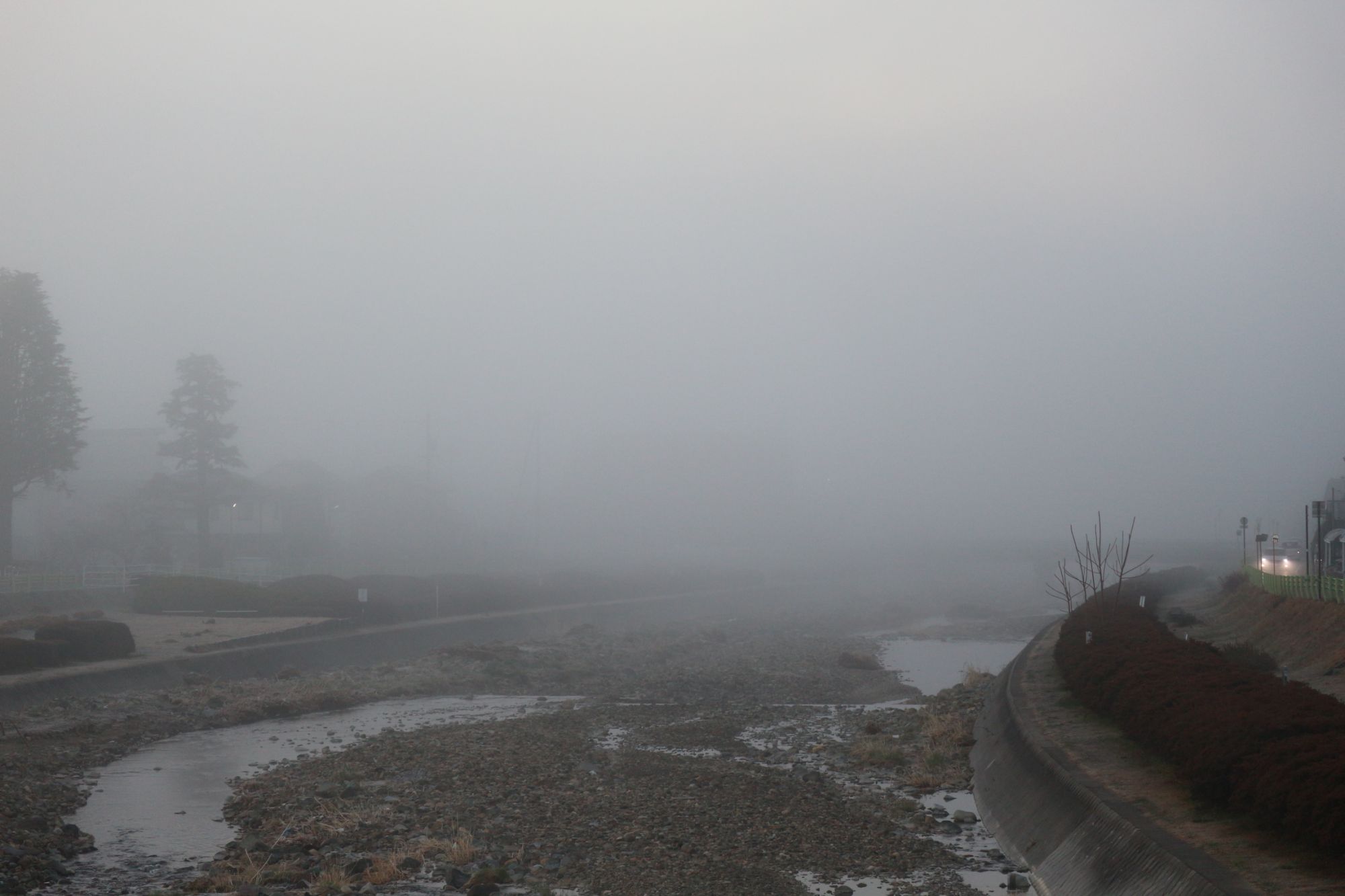 陽が昇るころに、放射冷却がおこりいっきに霧が発生しました。