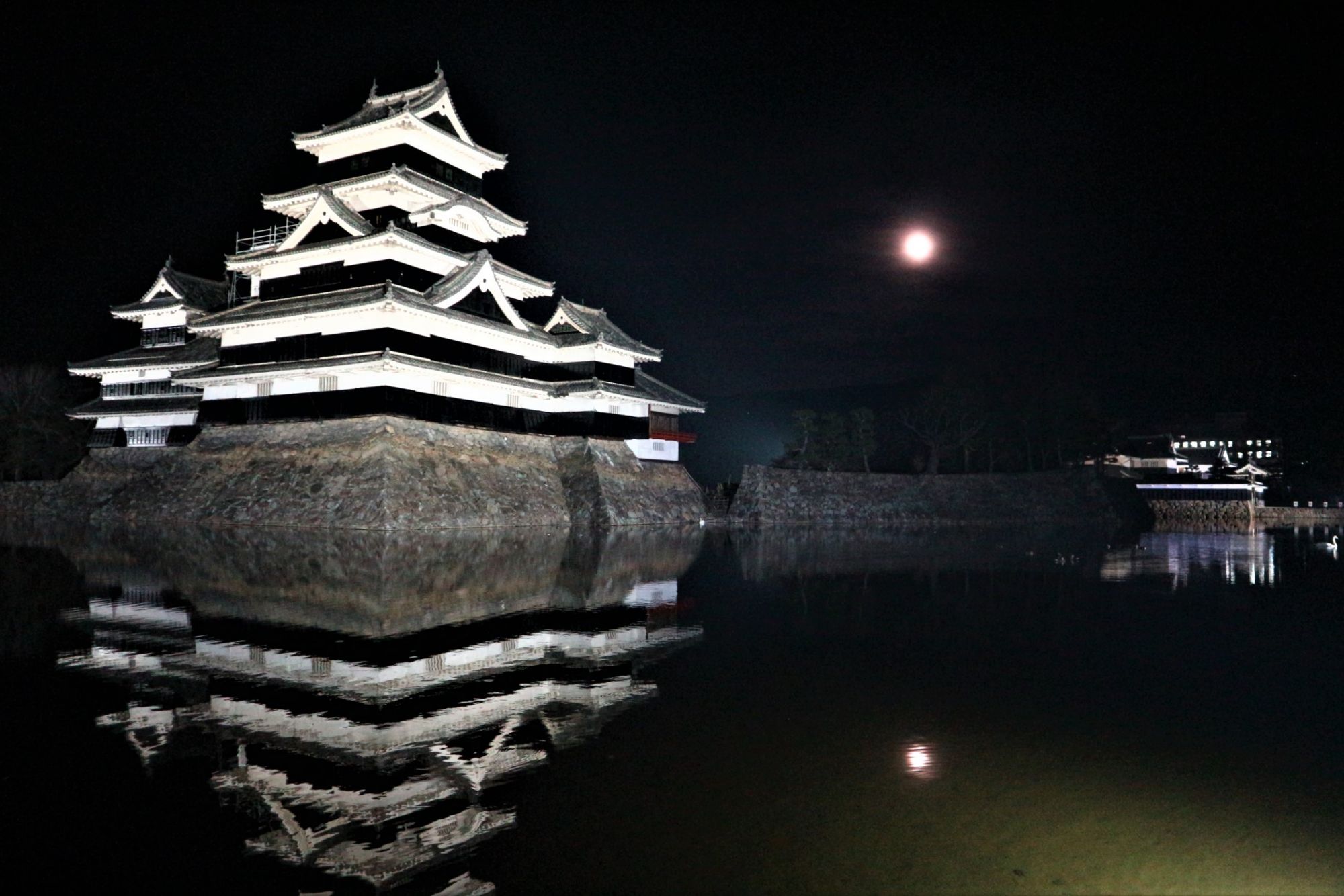 夜 東の山から昇る月 国宝松本城と縄手通り