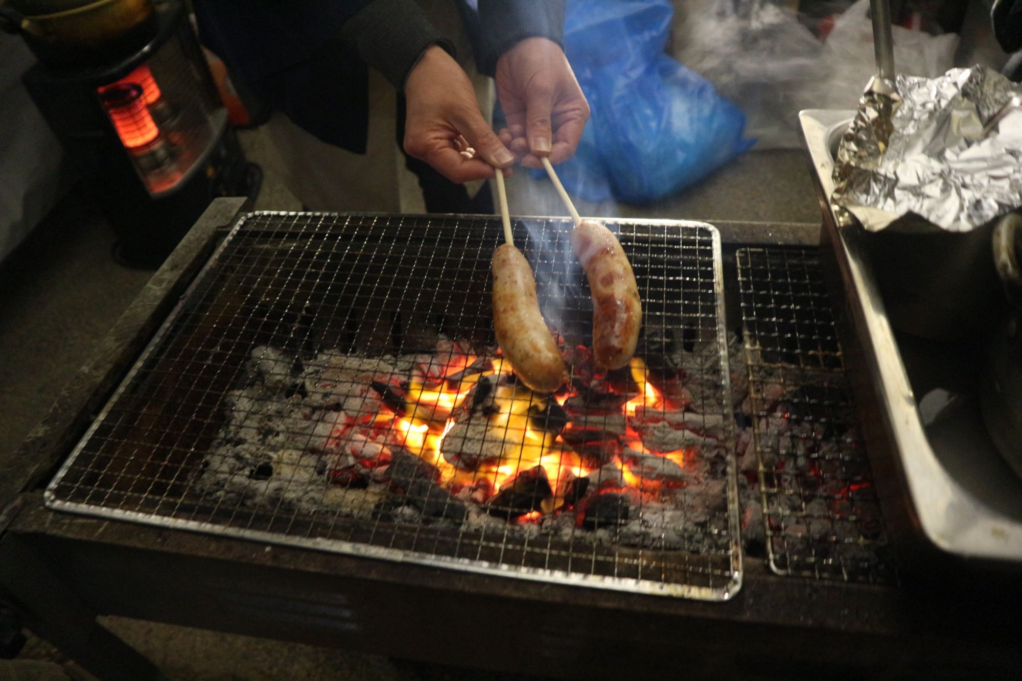 暖かいお蕎麦や焼きそば焼き栗・クレープなどお店が並んでます。