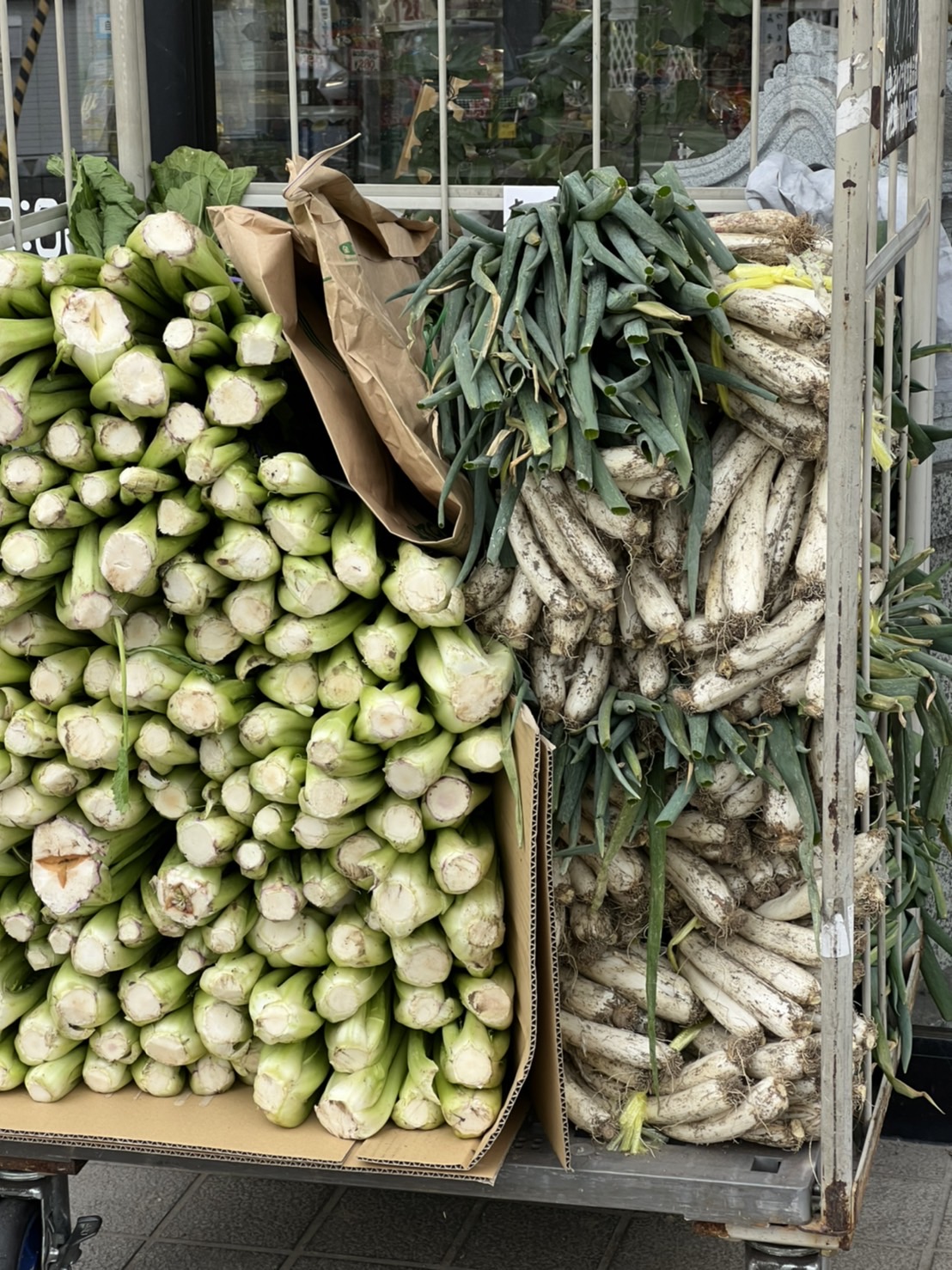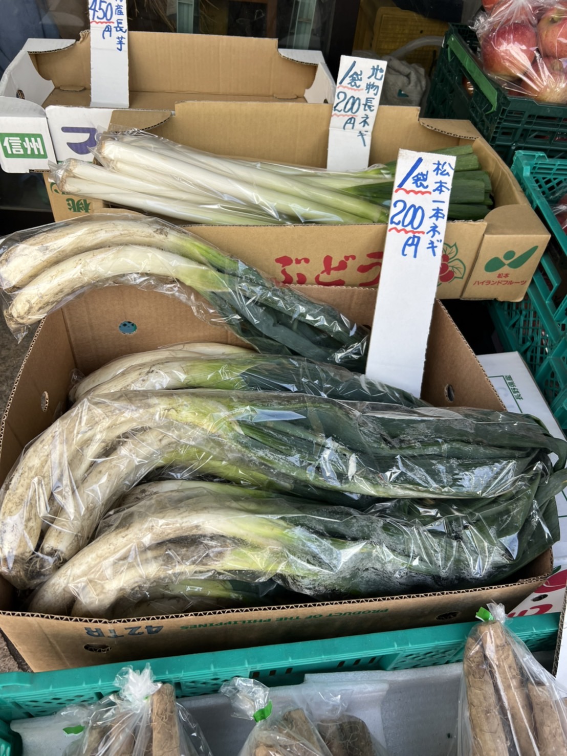 街中の八百屋さんに並んだ松本一本ねぎ
