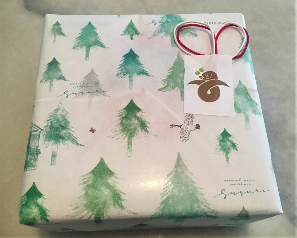 包装紙がとても素敵 紅白の水引きのような印も嬉しいです。