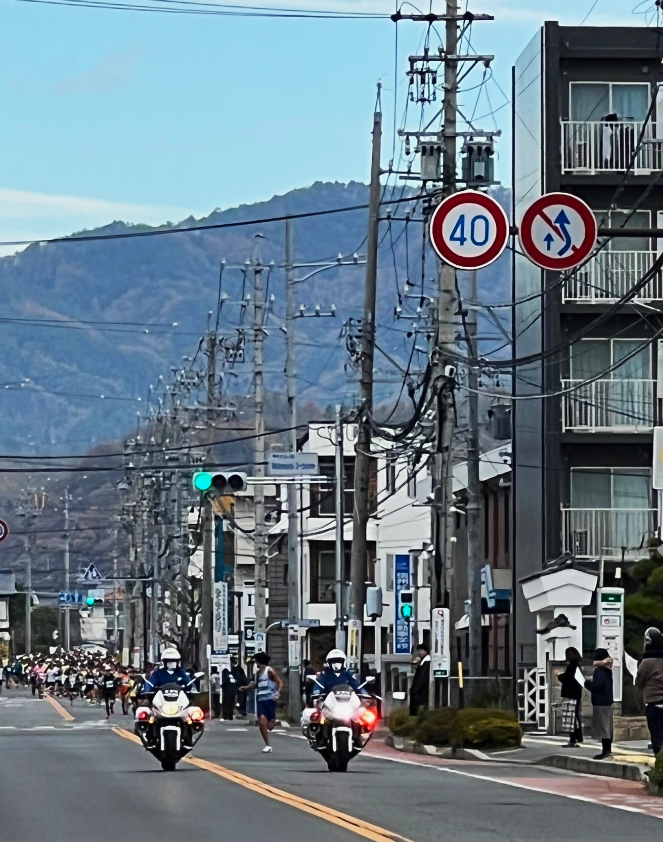 8時18分 スタートから僅か3分後先頭のランナーの姿が見えました。