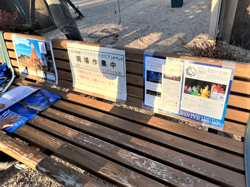 桝形跡広場・松本城の冬が煌めく冬の支度中!12月1日スタートです。