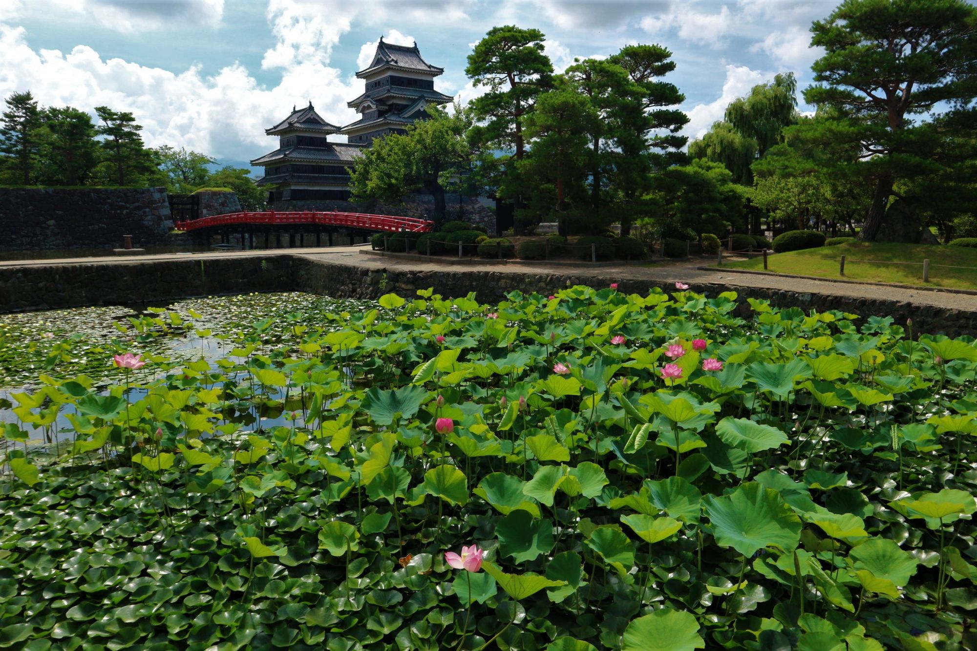 国宝松本城にお立ち寄りの際は、ぜひスイレンとハスの花咲く池もご覧ください。