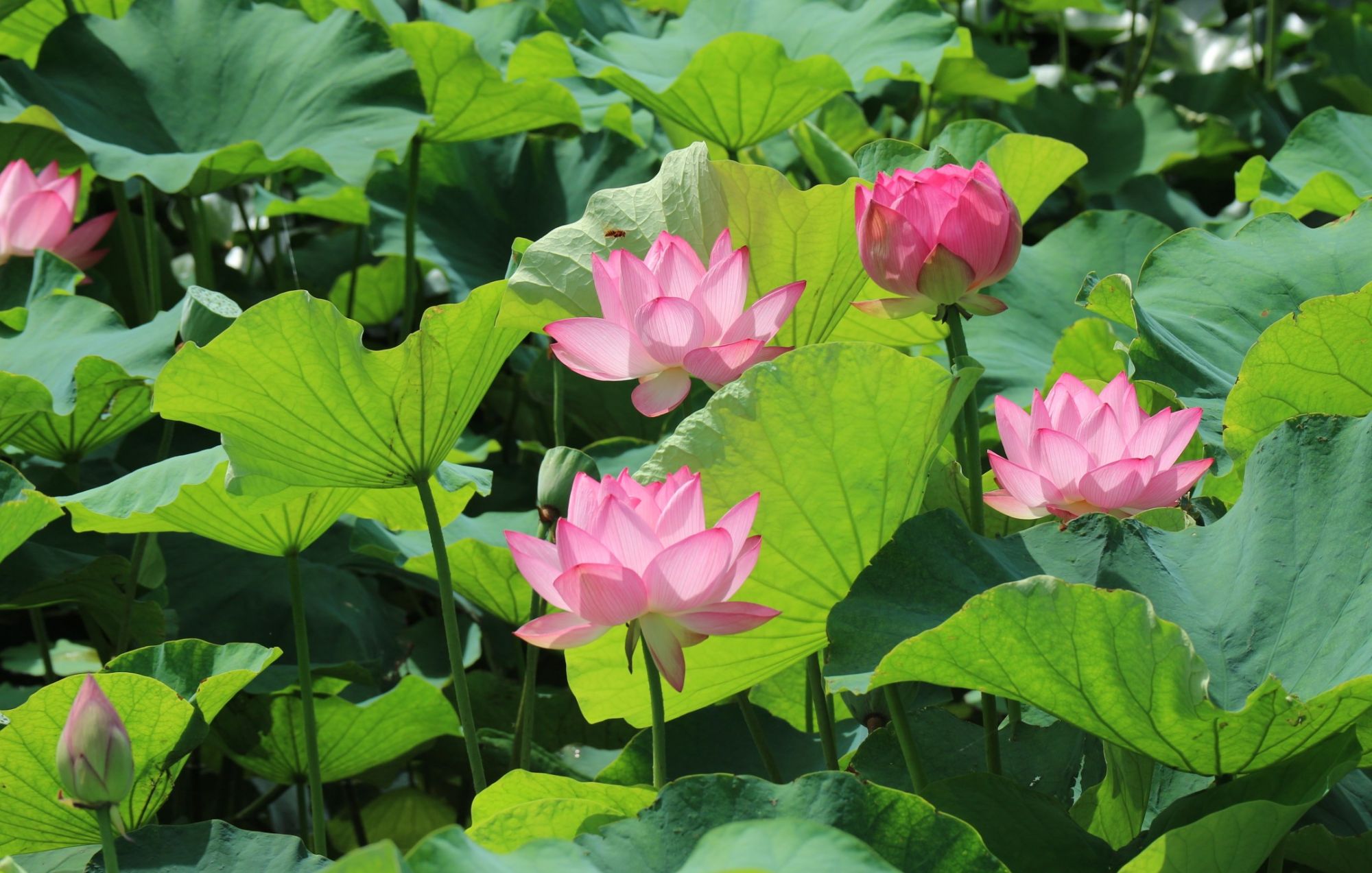 6月に先に咲いていたスイレンの開花からハスも花も沢山咲き始めています。