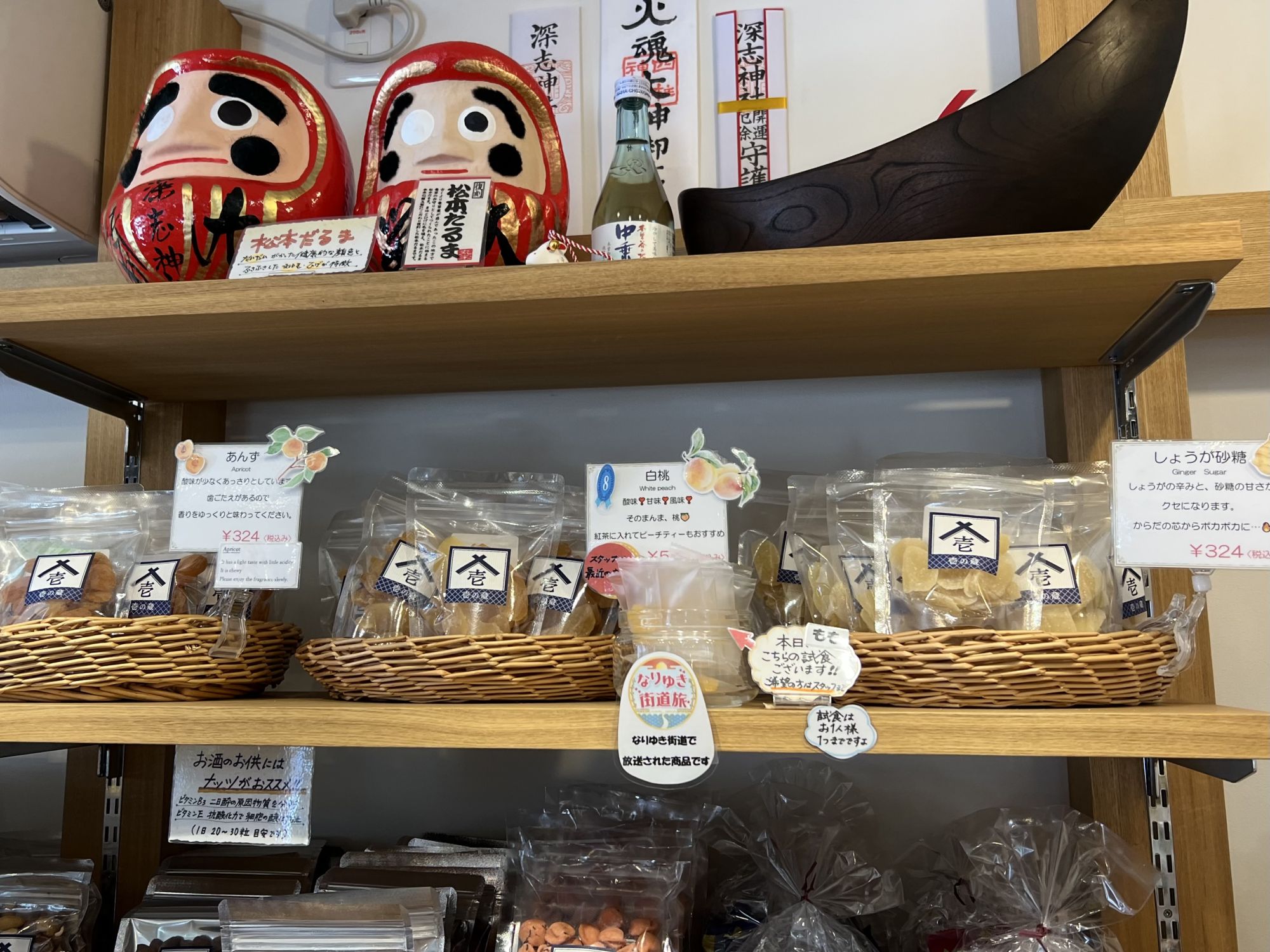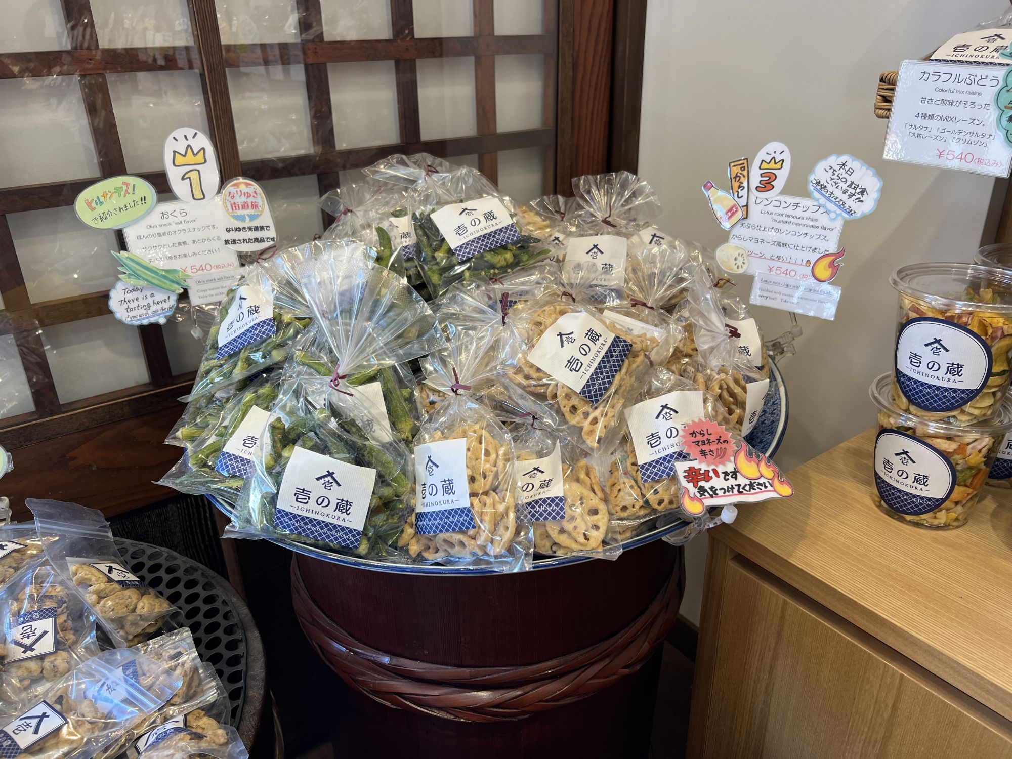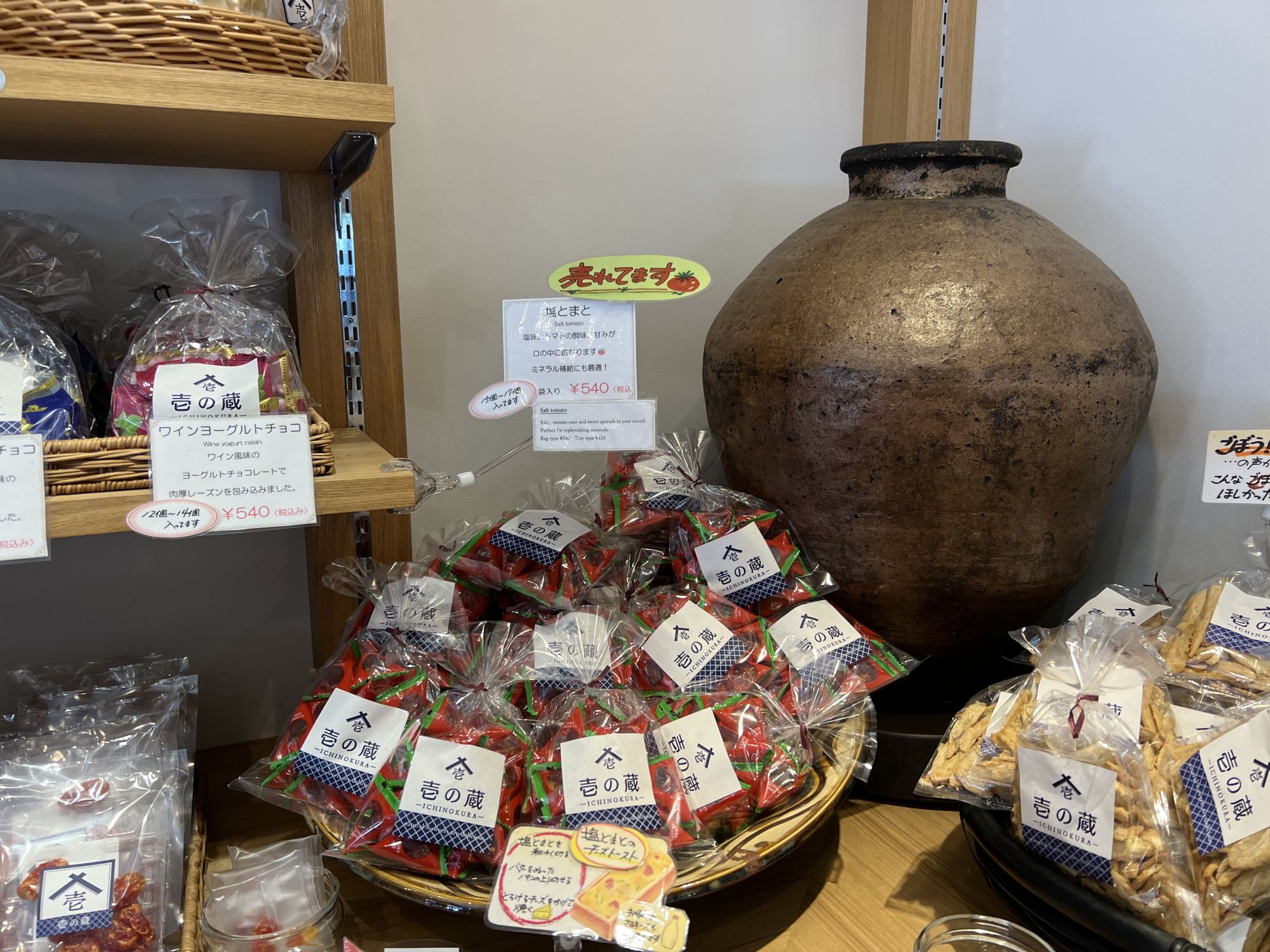 1階は、「壱の蔵」ドライフルーツ、甘納豆、野菜チップス、チョコレートなどを