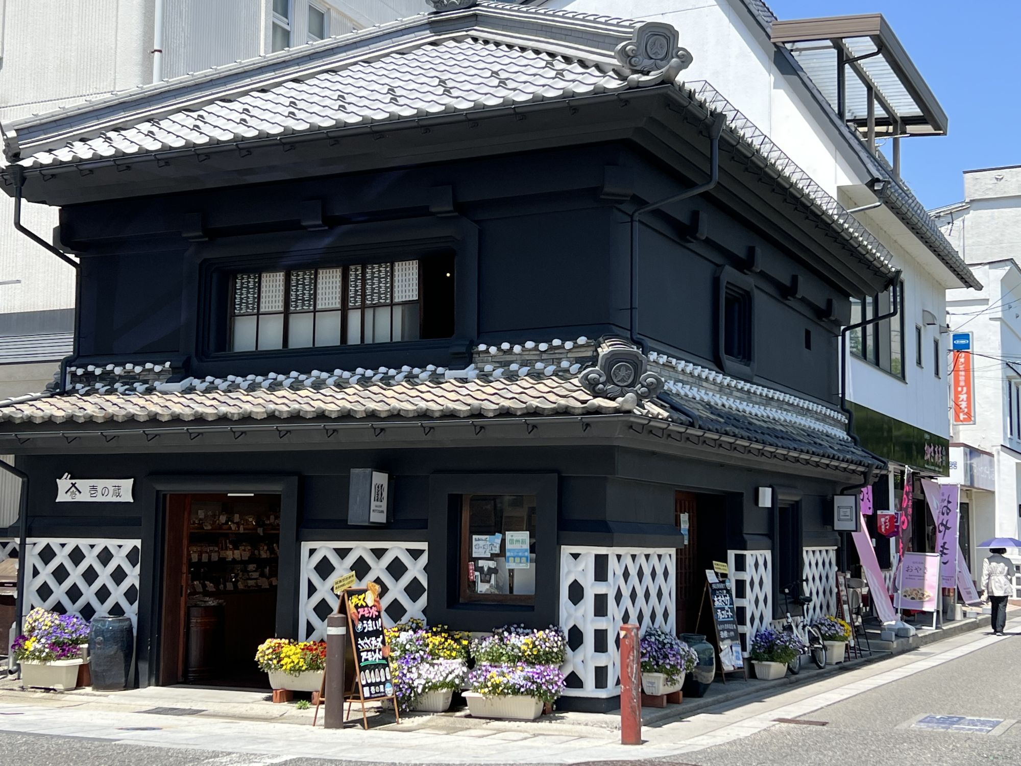 中町通りの角にひときわ目を惹く黒漆喰壁の建物があります。