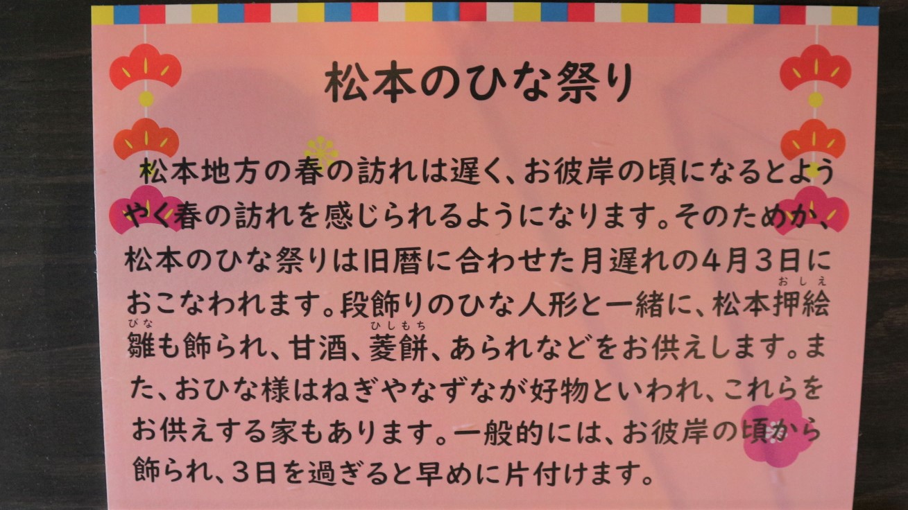 遅い松本地方の春の訪れに合わせて、高橋家でも 4月3日にひな祭りを行っていたそうです。