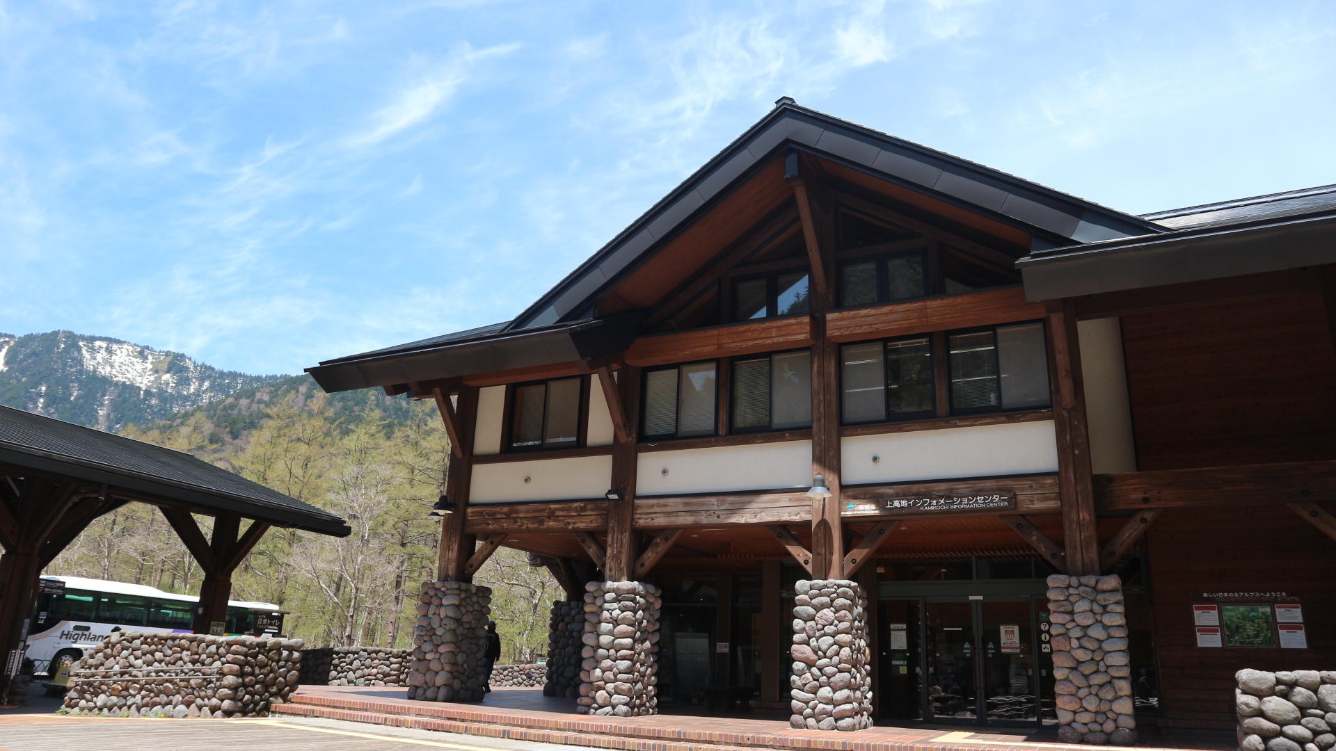 バスターミナルの隣にある上高地インフォメーションセンターでは、上高地の自然や散策・登山情報、交通、宿泊などさまざまな情報を提供しています。散策前の情報収集や休憩にお気軽にお立ち寄りください。
