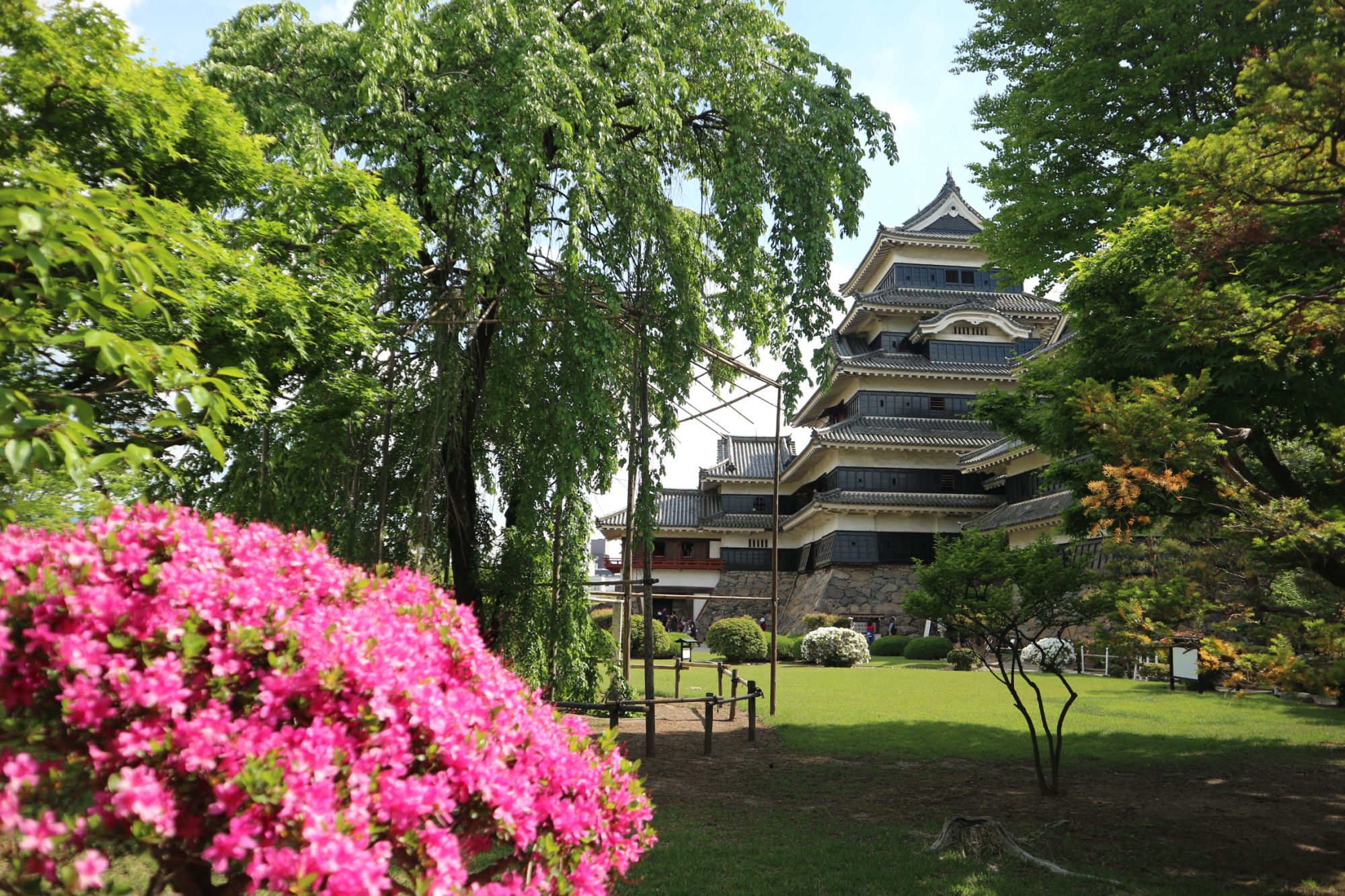 桜が散ったあとの国宝松本本丸庭園は、花盛りです!