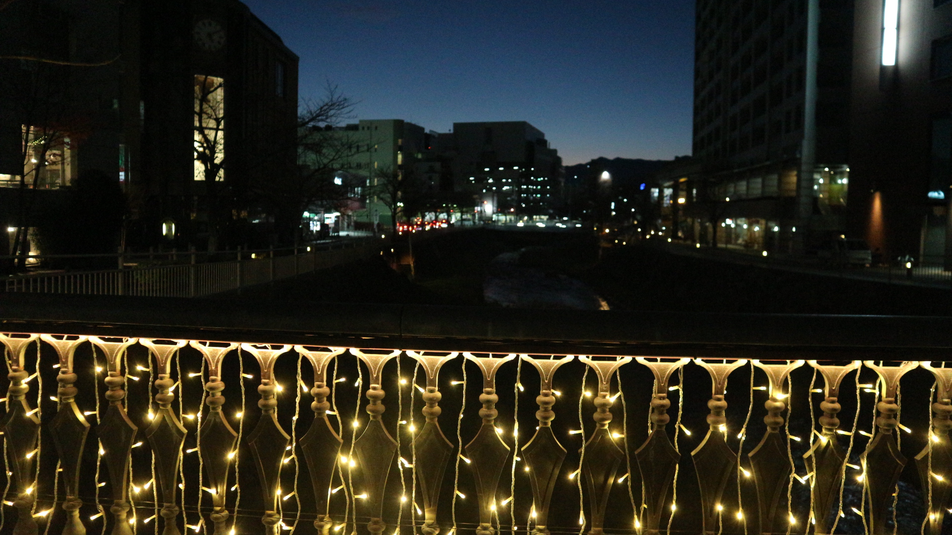 イルミネーションが綺麗~ 千歳橋~大名町のイルミネーションは、17時から点灯しています。