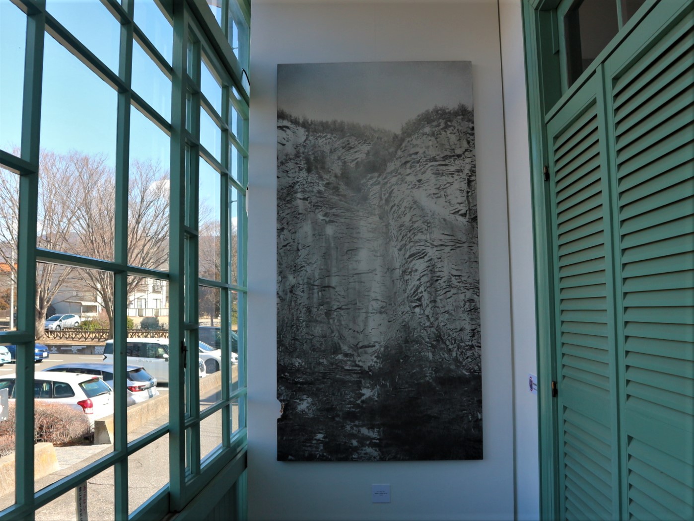 旧司祭館1階渡り廊下に2022年の最新の作品が展示されていました。窓の外の風景とも違和感なく、存在感のある作品です。