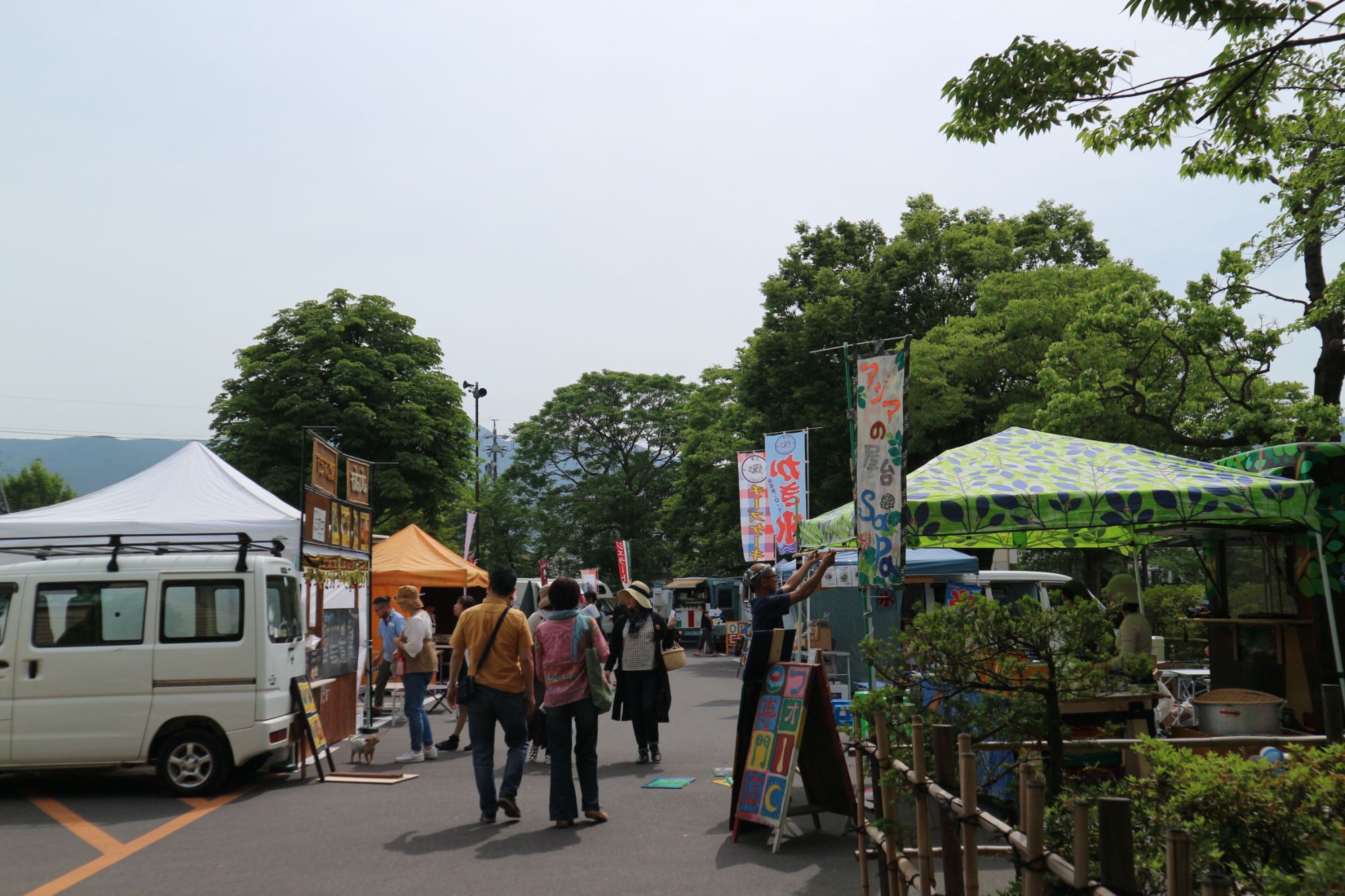 最近は、5月でもとても暑くなる日があります。気温が上がる場合は、充分な暑さ対策が必要かと思います。美味しい屋台も沢山出店しますが、いつも大行列!事前にパンやお弁当などゲットして公園で食べるのもピクニック気分で楽しいかと思います。敷物など持参することをお勧めします。