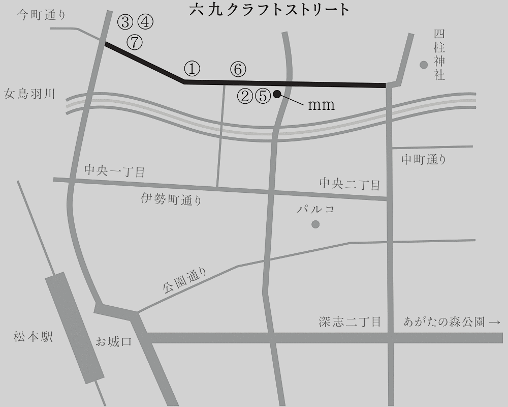 ①工芸の五月関係のイベントが開催されているのは、JR松本駅から徒歩10分ほど