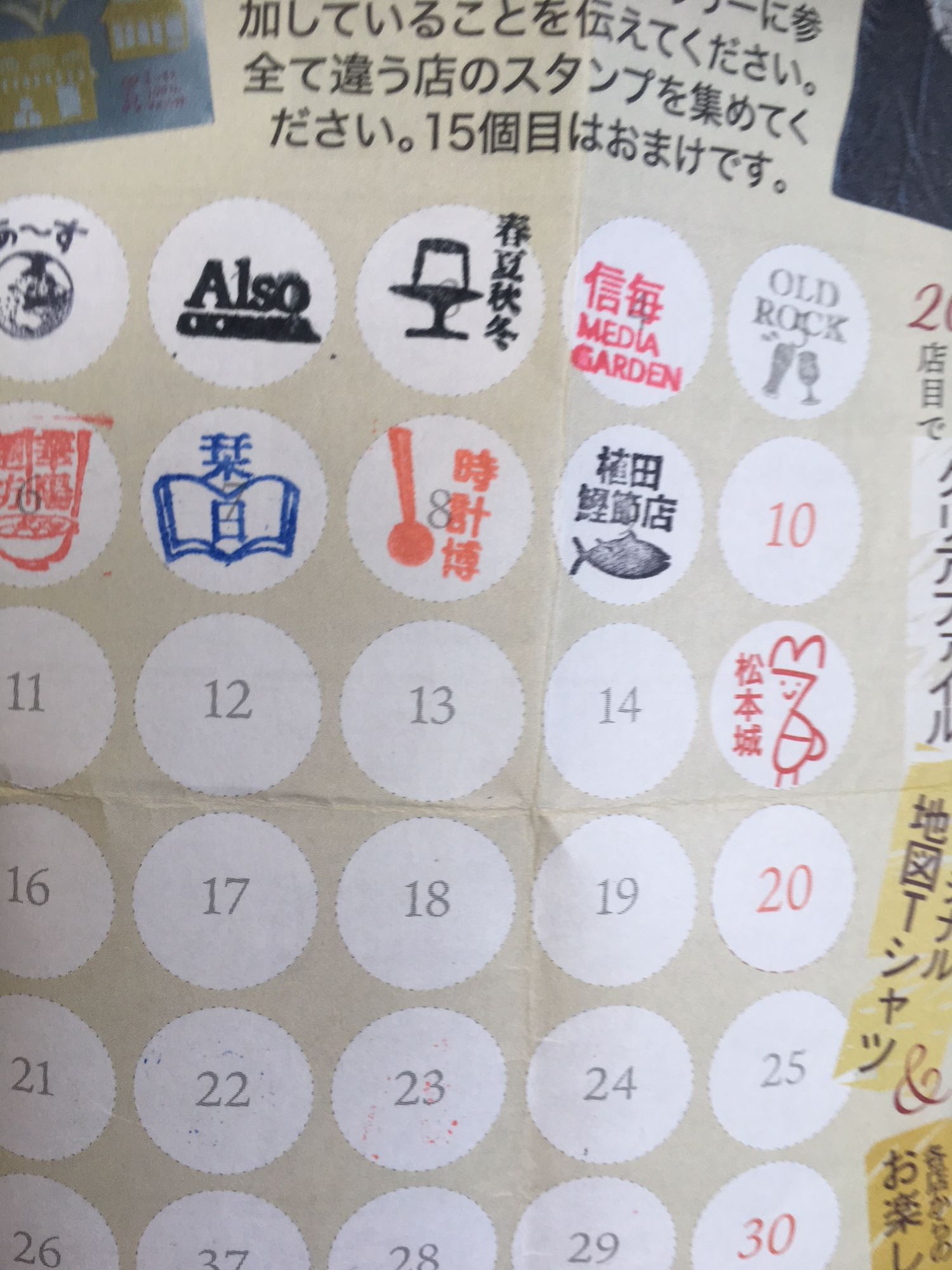 30店のスタンプを集めると「オリジナル松本地図Tシャツ」が先着30名様に差し上げています。