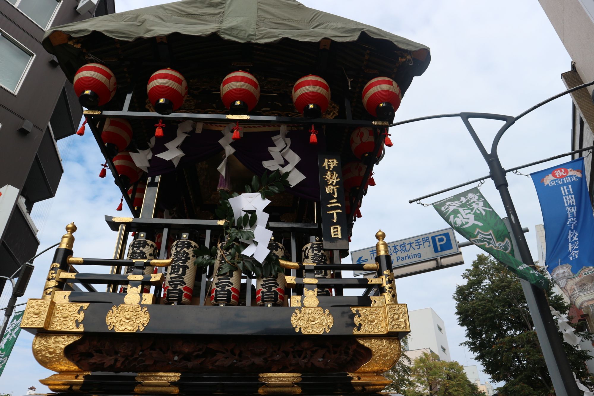 「舞台奉曳展示」城下町松本の舞台がズラリ勢揃い! イベントレポート 神社・仏閣 お祭り 2019.10.3 ♥79 重要有形民俗文化財18台出御 四柱神社例大祭「神道祭」2日は、城下町松本の各町会の舞台が並びます。 朝7時から16時まで大名町通りは交通規制が敷かれました。 舞台 見事な細工を施された舞台に街行く人々が撮影したり暫し足を止めて眺めていました。 六九舞台 六九舞台 六九舞台彫り物 本町三丁目 本町3丁目 本町一丁目 舞台 大名町通り 舞台 神道祭2日目 女鳥羽川沿いにも屋台が並ぶ 屋台 拝殿 2019年10月2日ナイアガラ 2日目ナイアガラ 打ち上げ花火 これから松本では沢山秋のイベントやお祭りが開催されます。 ナイアガラと観客 Tweet