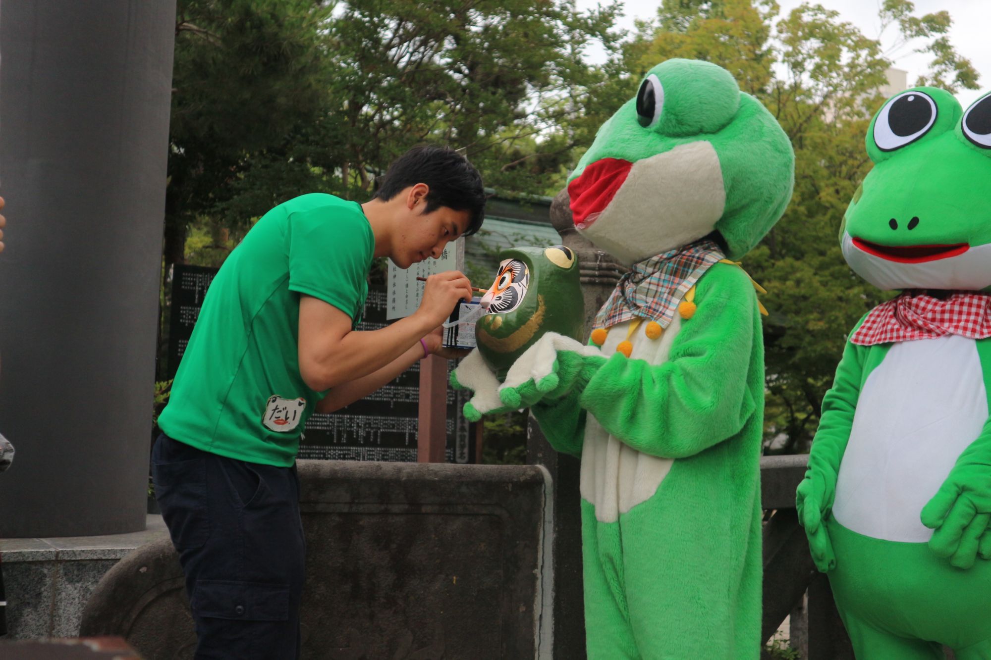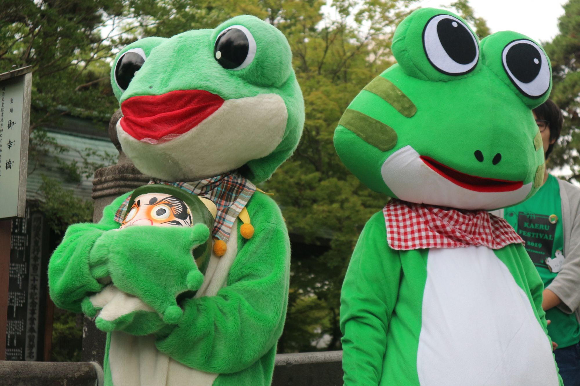 「お菓子をくれないとイタズラしちゃうケロ!」と言う姿はかえるまつりの名物です。