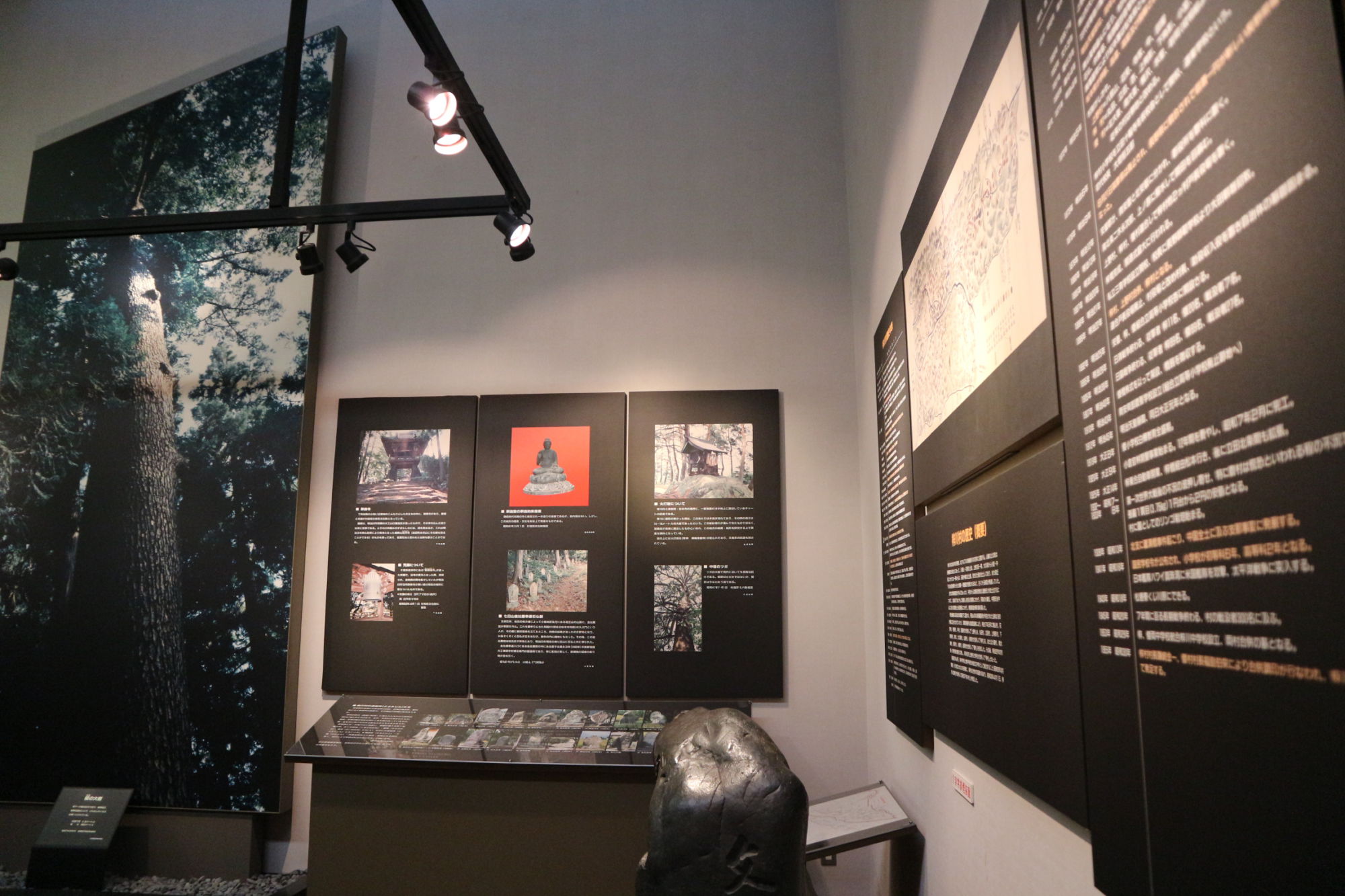 西牧山真光寺(曹洞宗)に安置されている「木造阿弥陀如来及び両脇侍像」のパネルを正面に据えております。