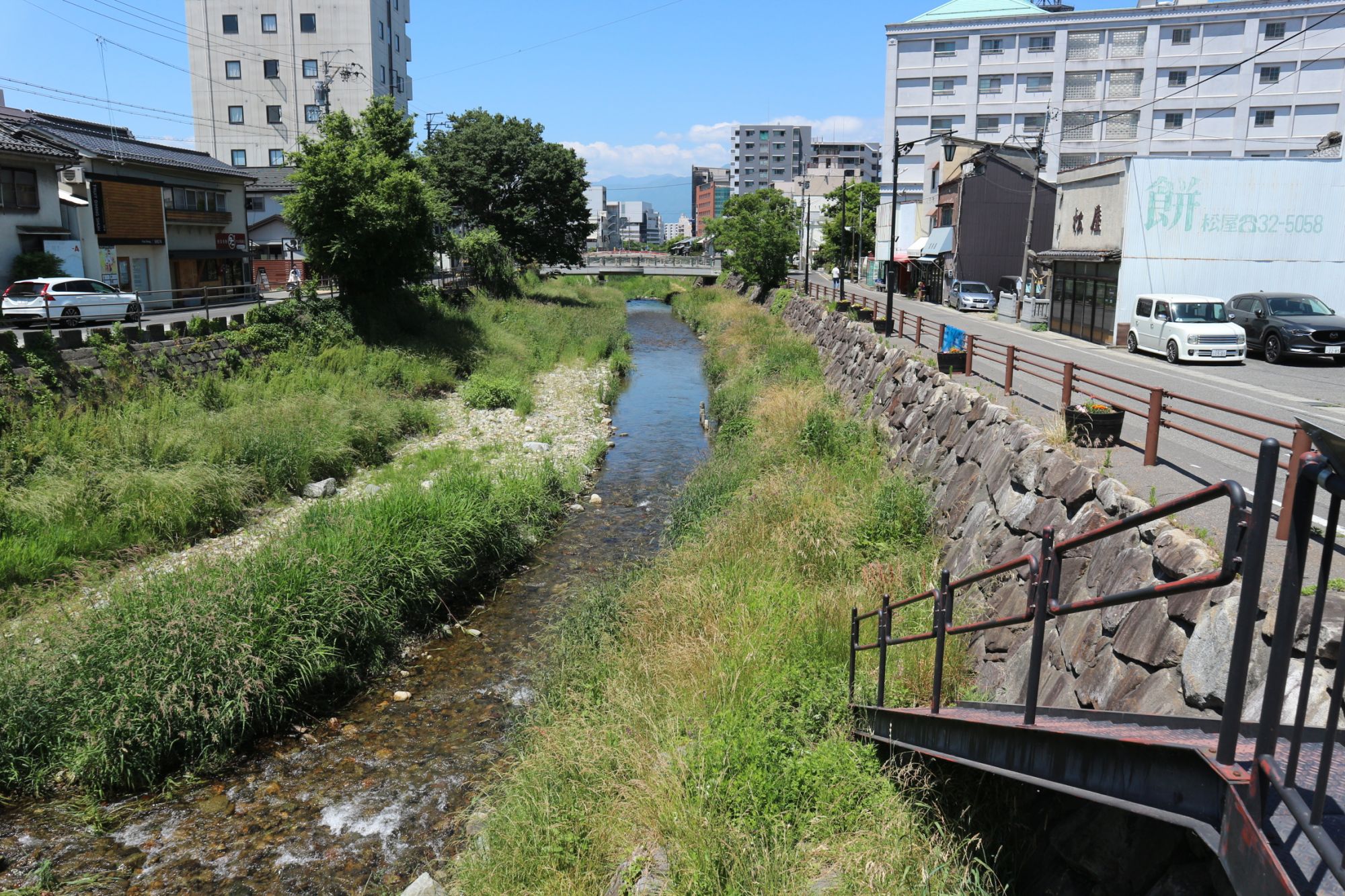 清水橋から上流へ行くに従い、河原の幅が広くなります。