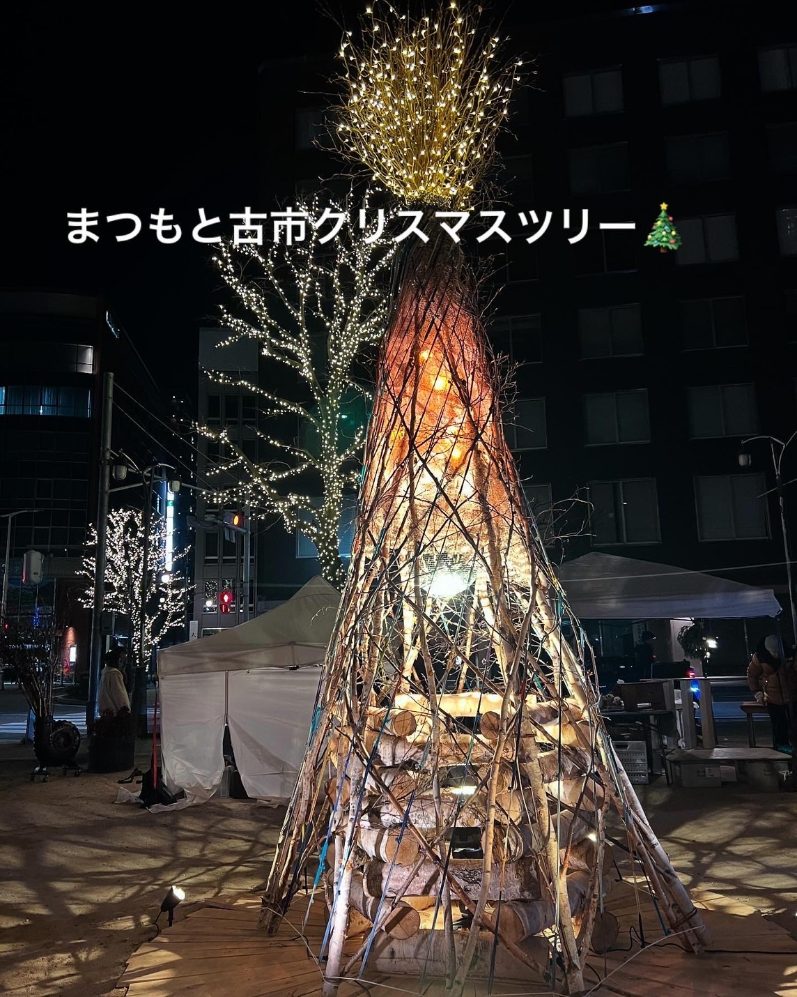 まつもと古市#107 クリスマスツリー まつもと古市 夜を楽しむ クリスマスツリー 市街地 イベントレポート 松本さんぽ 冬を楽しむ 2024.12.18 ♥38 毎年12月開催時に、まつもと古市ではクリスマスツリーが飾られています。 朝10時 お店が開店しました。 古市朝10時 夕方 夕方 当日12月14日は、10時~19時まで古市は開催されていました。 20時ごろにまた行くことが出来て片付けている時間です。 古市クリスマスツリー 大名町通りのイルミネーション 大名町通り 四柱神社鳥居 四柱神社鳥居 縄手通り 縄手通りと月 いい夜でした。 まつもと古市クリスマスツリー Tweet