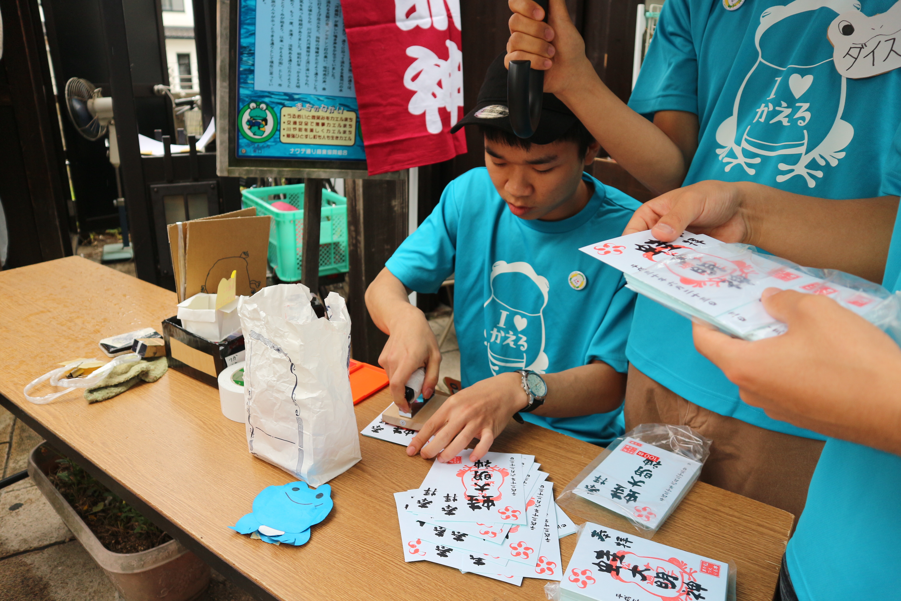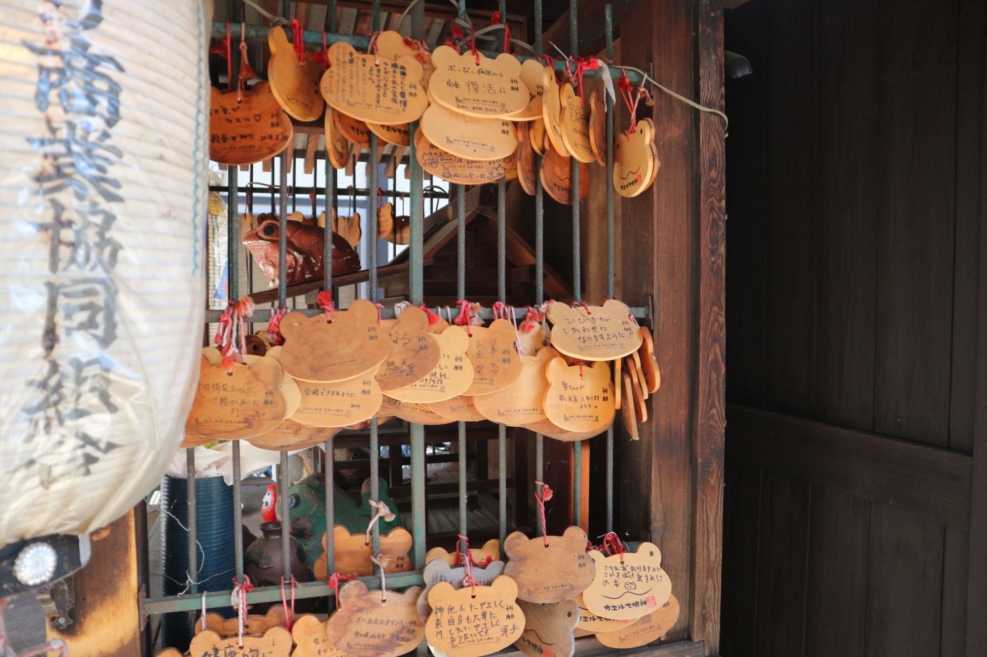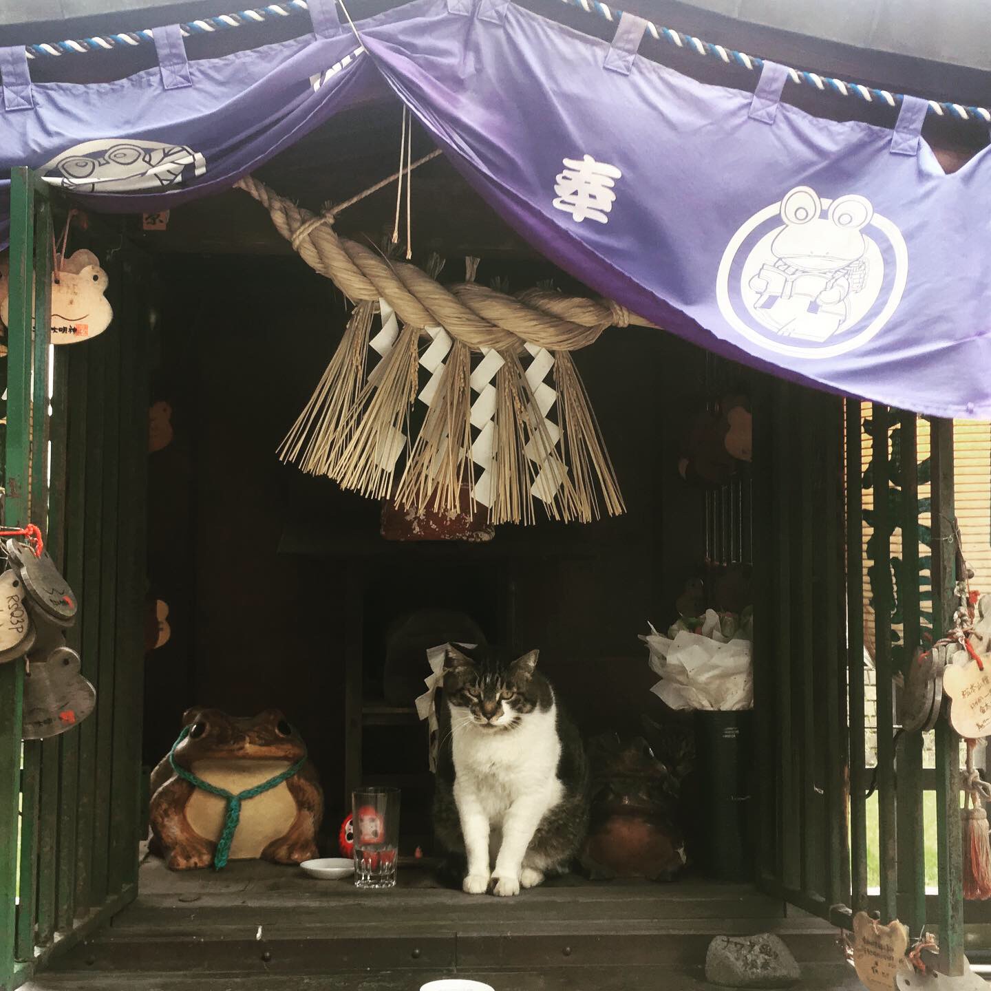 カエル大明神の隣で商いをしているお店の人が、新しいカエル大明神にカエルのぬいぐるみを持って写真を撮っている人を何度か見かけて、これはどういうことだろうと調べてみたところカエルが好きな人が世の中に沢山いることを知りました。