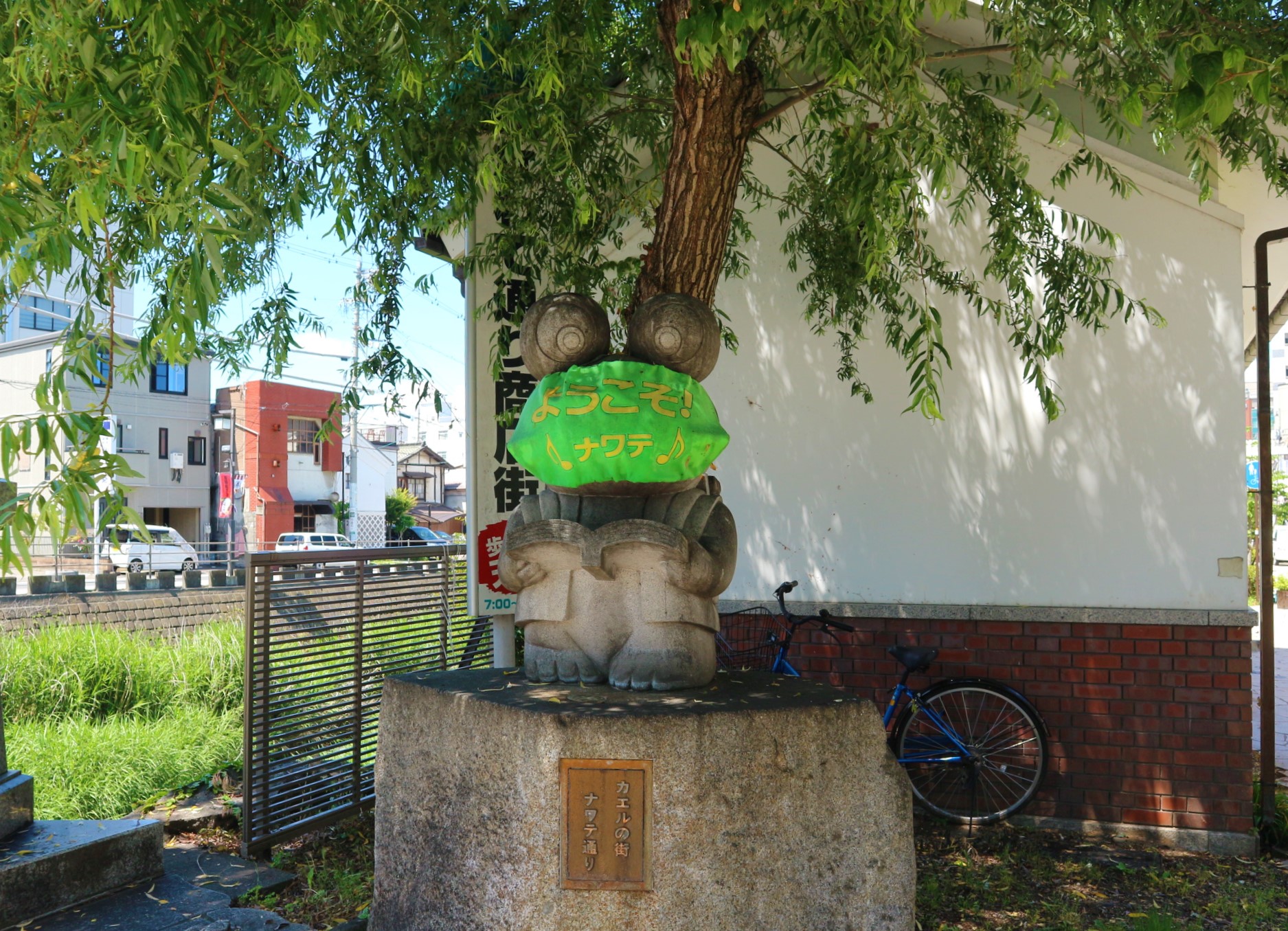 ナワテ通りでは、昭和46年に「ナワテ通り商業協同組合」を設立する際に、清流にしか生息しないと言われるカジカカエルが、再び棲めるような綺麗な川にしたいという願いを込めて