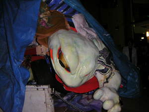 2005年に東京藝術大学デザイン課の1年生から芸祭で作った大きなカエルのお神輿をもらって欲しいという連絡が入りました。