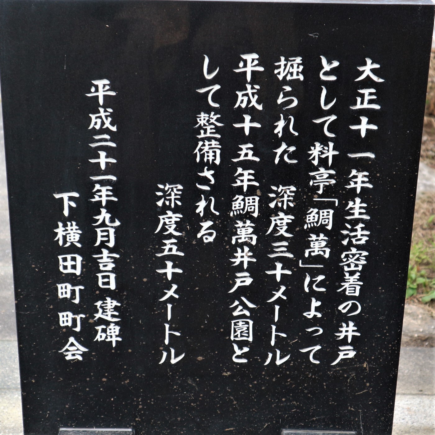 鯛萬の井戸は、大正11年生活密着の井戸として料亭「鯛萬」によって掘られました。
