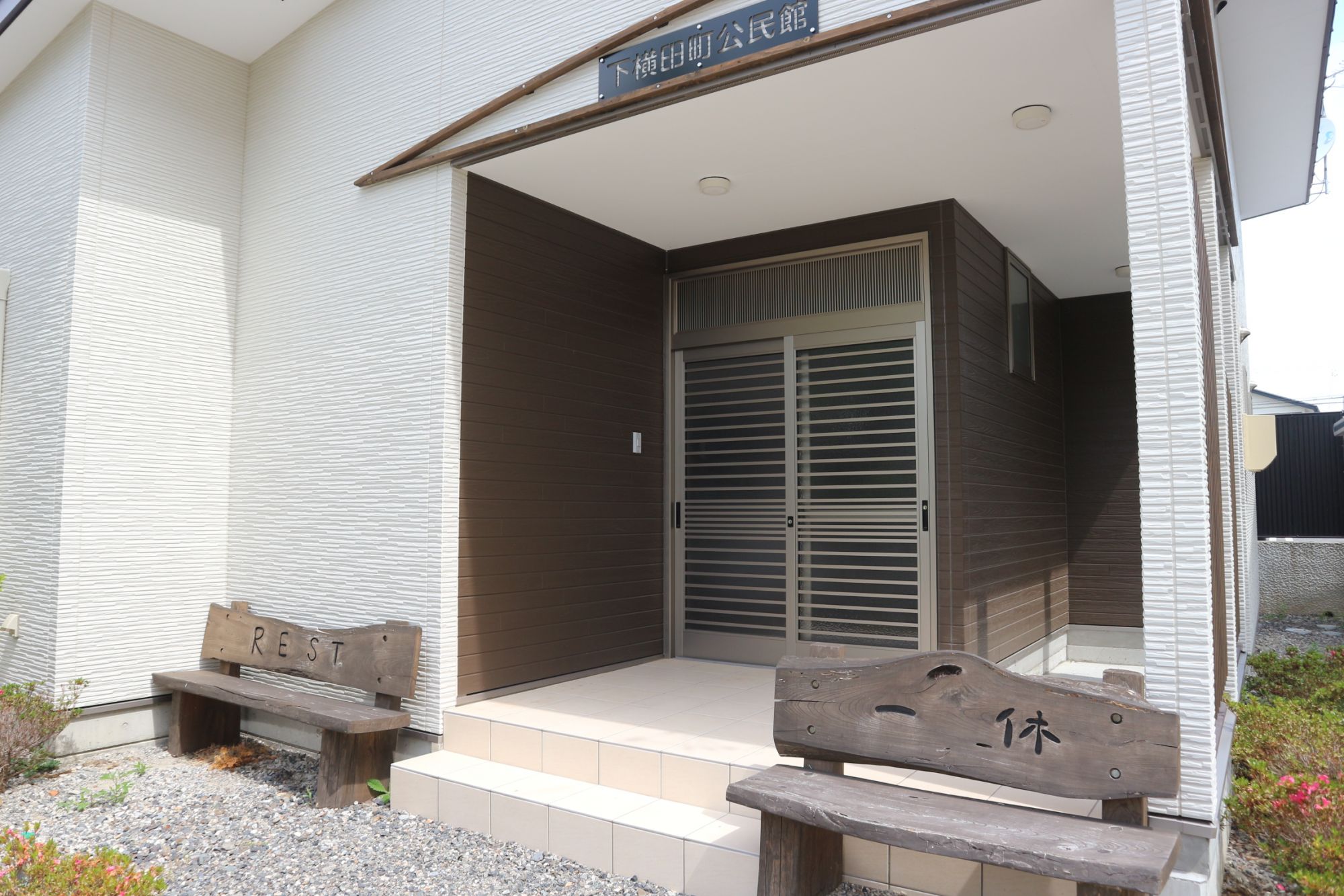 少し久しぶりに来たら新しい公民館が出来ていました。おやすみ処のベンチも並んでいます。
