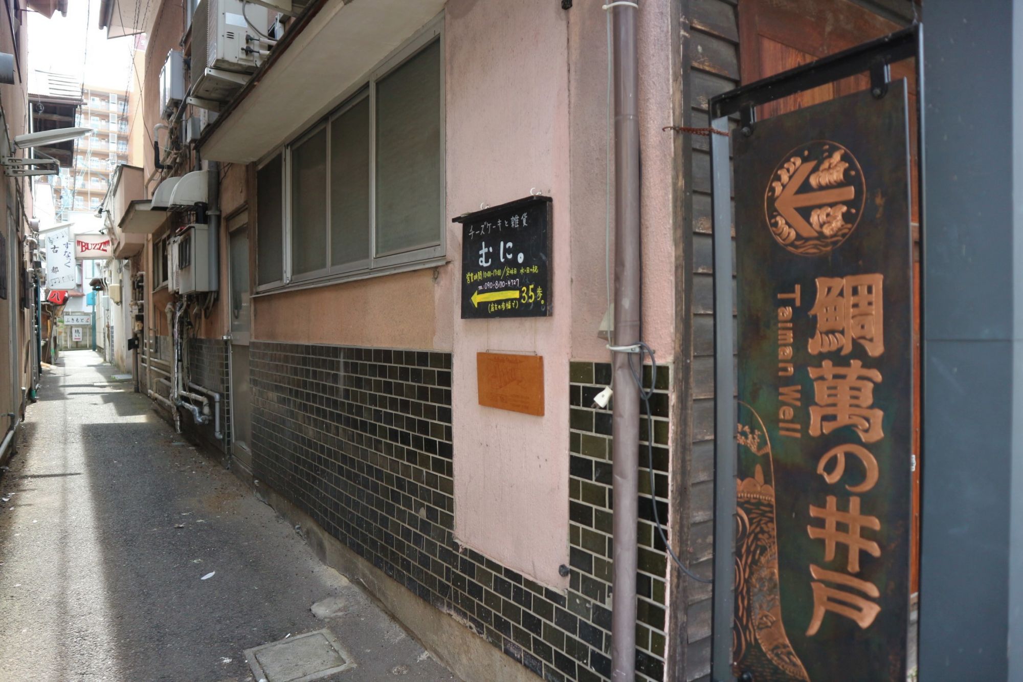 小路の入口に「鯛萬の井戸」案内の素敵な看板があります。