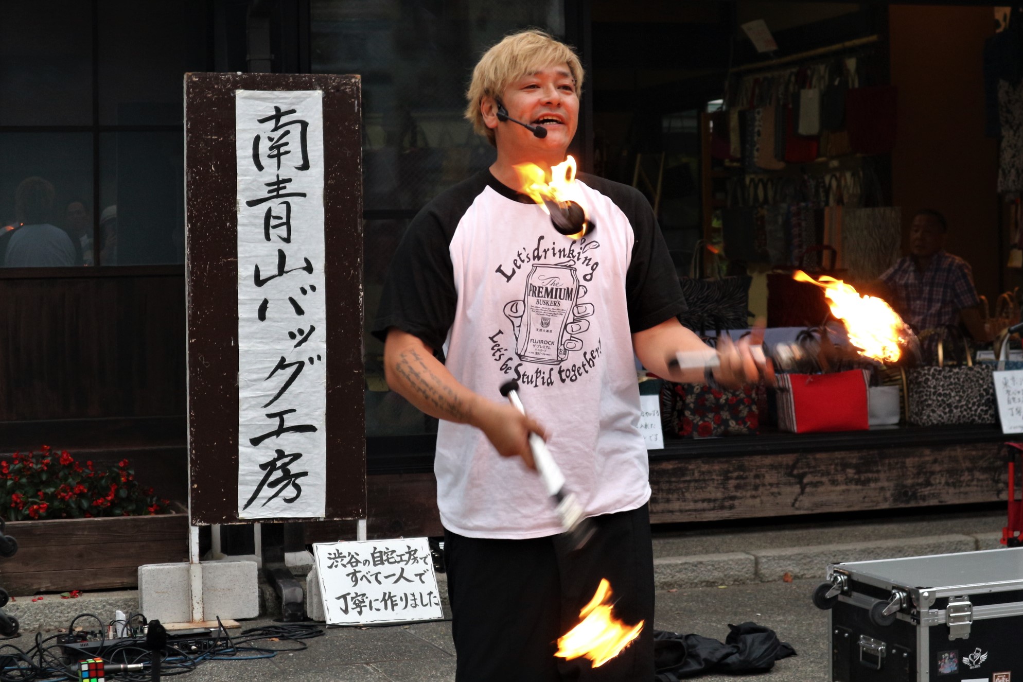 軽快なトークで観る者を魅了するのは、トークだけではない。笑いの連続の中でふとすごいマジックを見せてくれたり、最後は炎のジャグリングで〆る。まさに芸人!