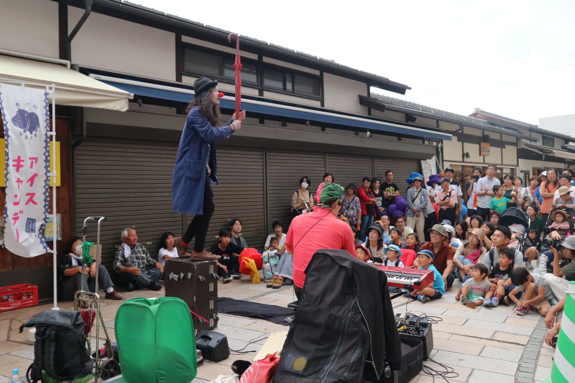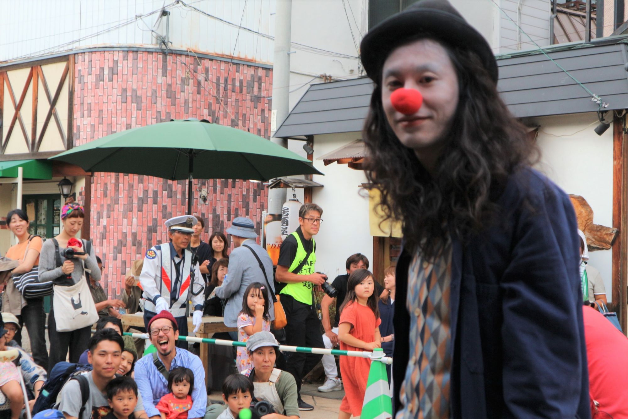 前夜祭に引き続き「芸人まこと」さんのパフォマーが歩行者天国の大名町通りでおこなわれていました。