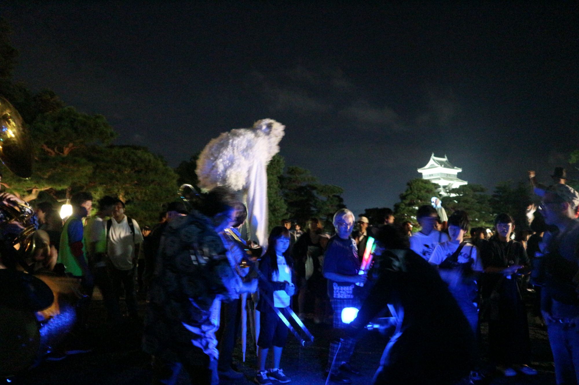 軽快なトークで見る人の心をわしづかみにして暗闇の中、笑いと歓声に包まれていました。