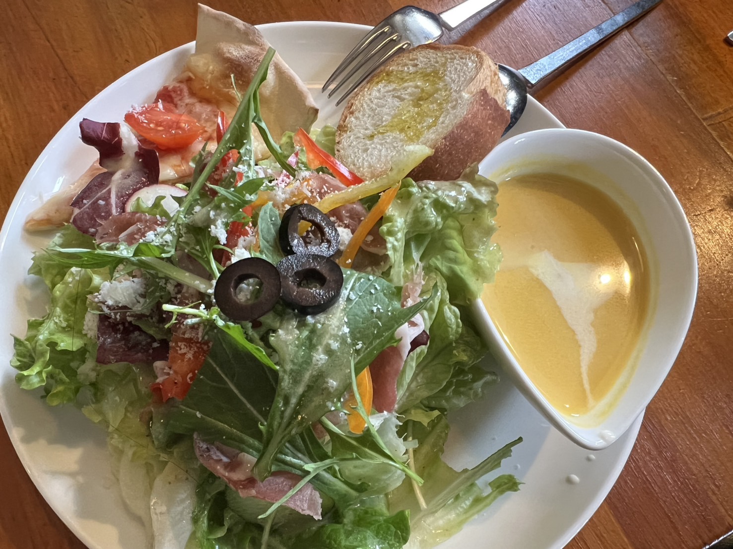 ランチセットは、前菜とパスタとそしてドリンクも付きます。